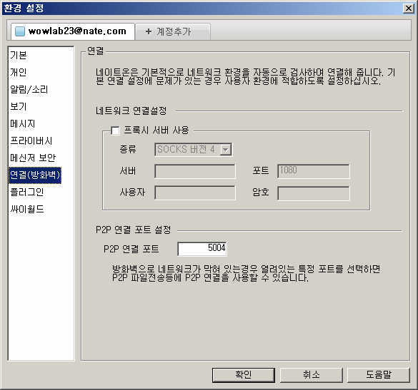 7. 요건 네이트온에있는 프록시설정부분, 필요하신분들은 알아서 맞추세요.