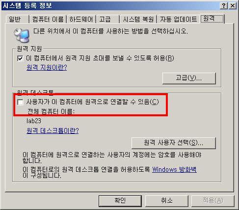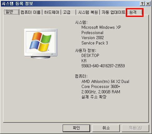 1. 집에서 쓰는컴퓨터 혹은쪽에다 원격지원을 활성화 시켜줍니다. 윈도XP메뉴 제일마지막 메뉴입니다.
