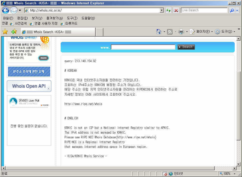 6. 이 아이피를 추적해봅니다. 역시 국내가 아니고 유럽에가서 알아보라는군요.