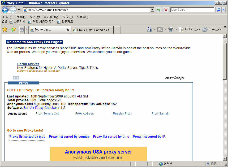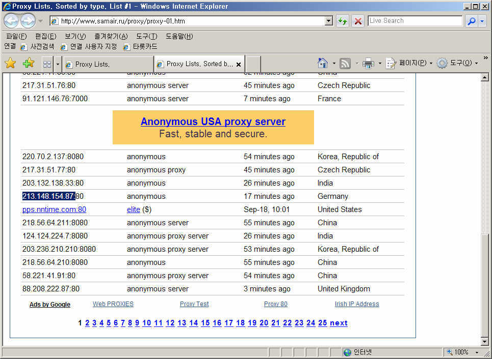 요긴 내가 자주 애용하는 러시아쪽 프록시서버 목록사이트.
