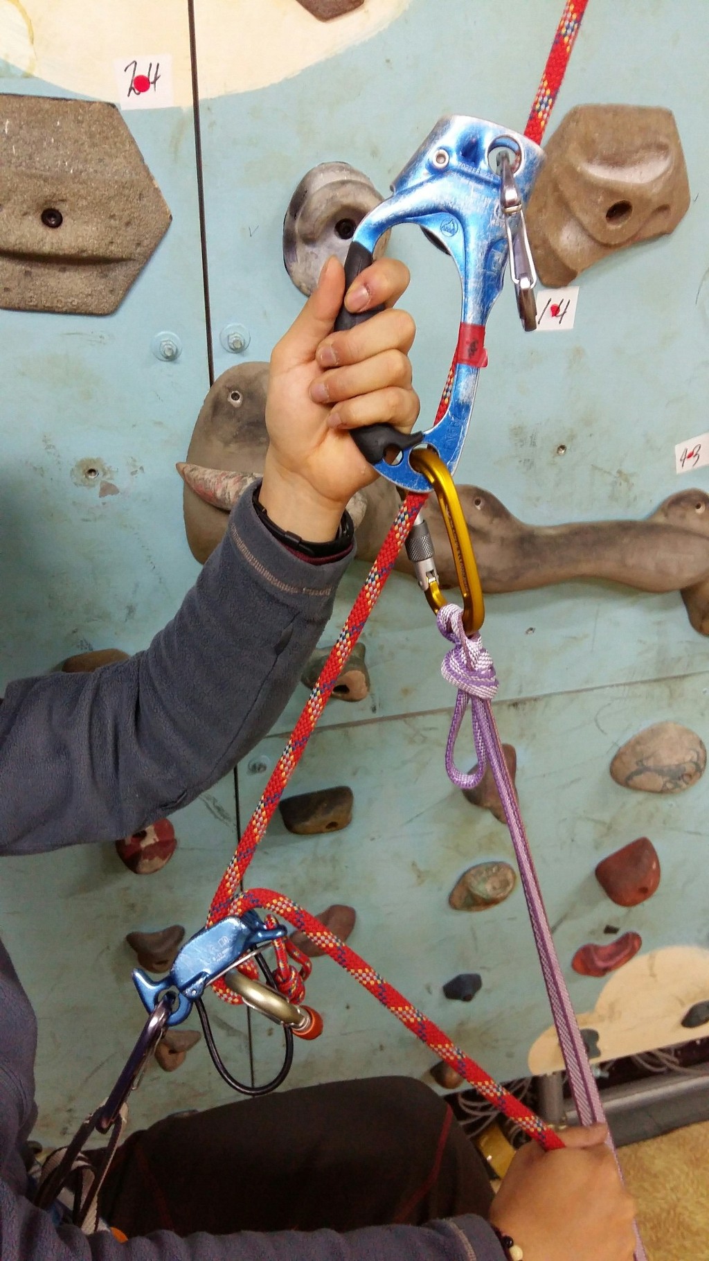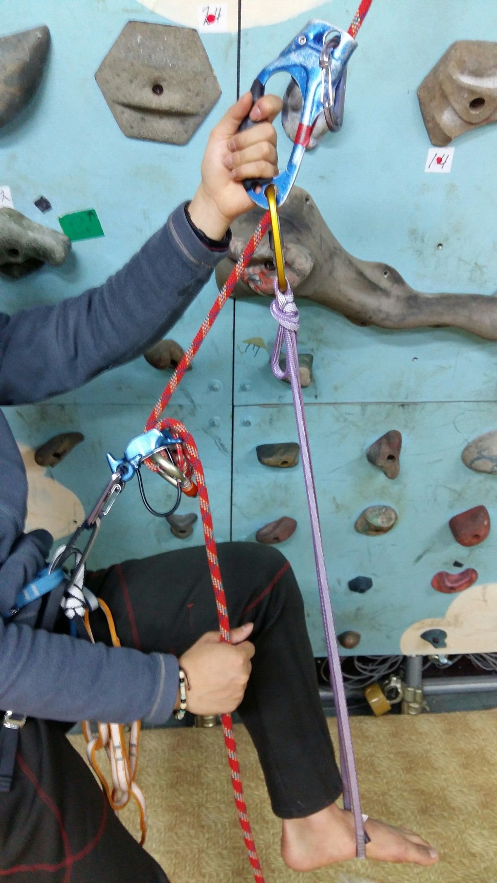 주마가 1개만 있을때 확보기로 등강을 할수 있는 방법이다.(주마+확보기)