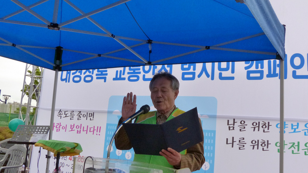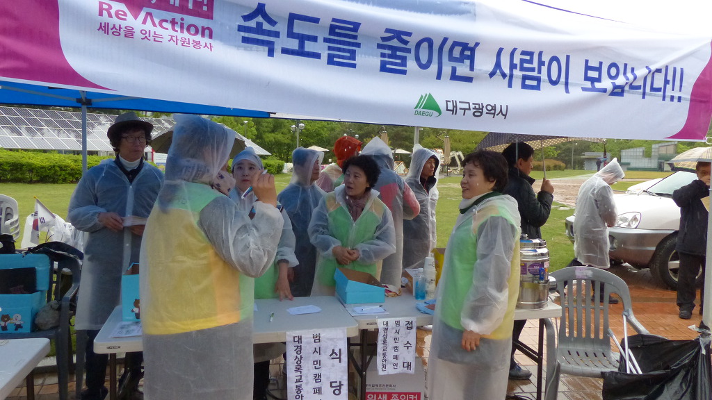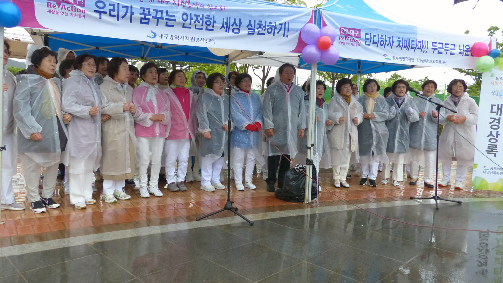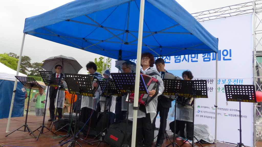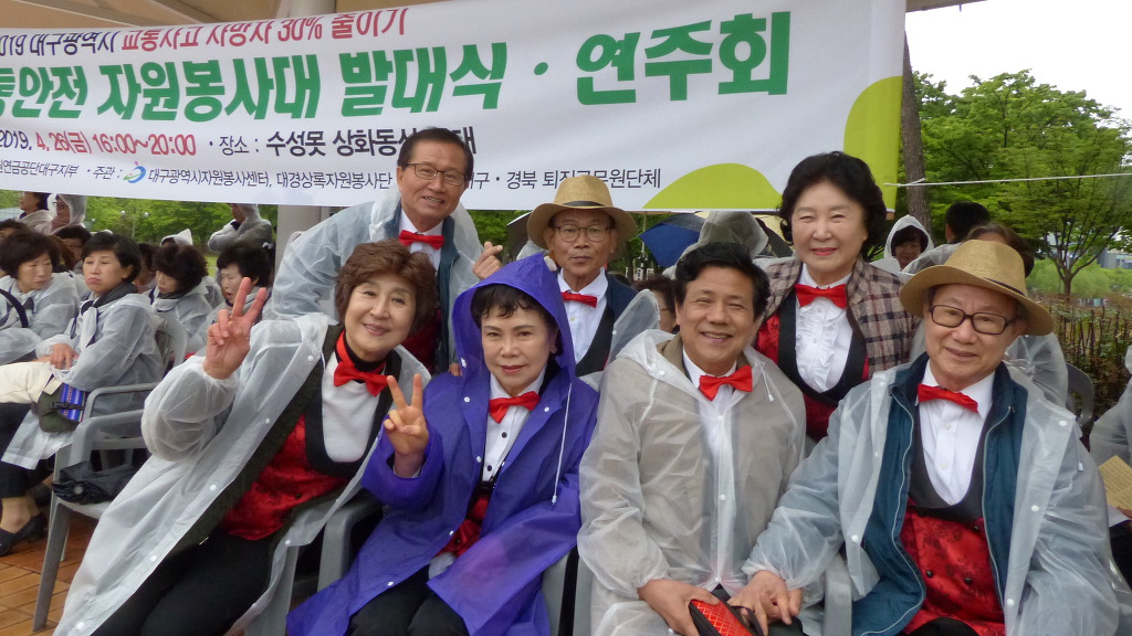 4 26(금) 수성못 상화동산 무대에서 펼쳐진 "대구광역시 교통사고 사망자 30 줄이기 " 범 시민 캠페인에 동참 하신 모든분께 감사를 드립니다..당일 날씨가 예보와 달리 행사시간에 비가 내려 첨엔 날씨를 원망 하며 걱정을 많이 했습니다만 행사에 동참하신 모든 분 께서 한 마음 한 뜻이 되셔서 격려해 주시고 즐거워 해 주셔 행사를 무사히 마칠 수 있어 정말 다행으로 생각을 합니다..참가 해 주신 모든 분께 다시 한번 감사드립니다 고맙습니다..최상순드림 -