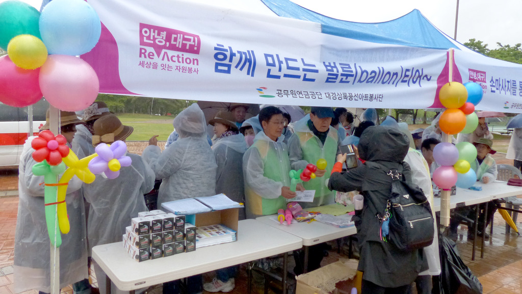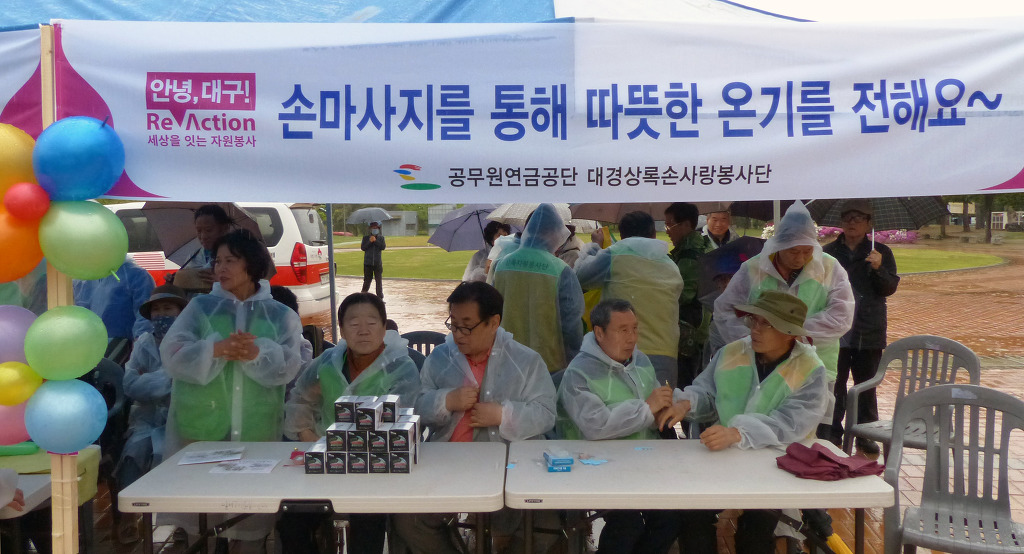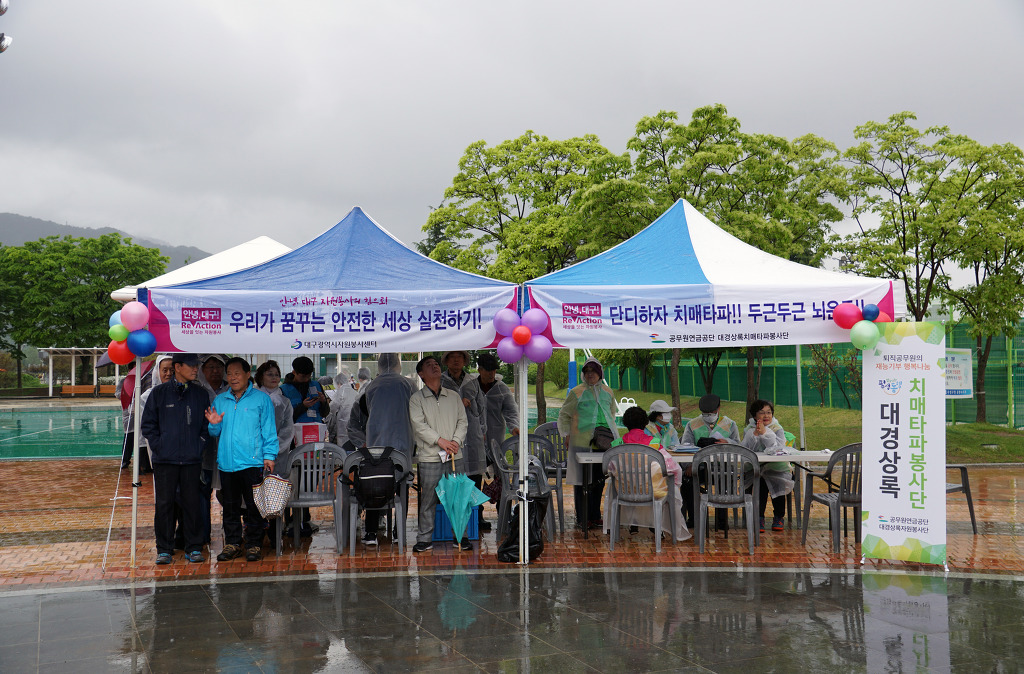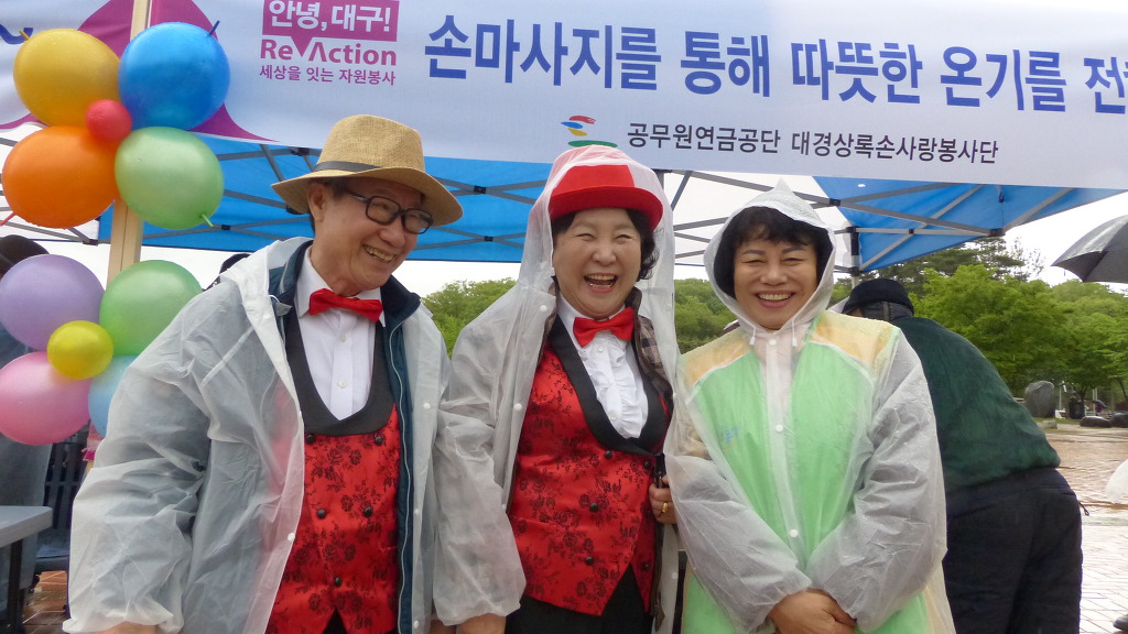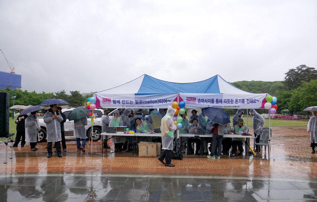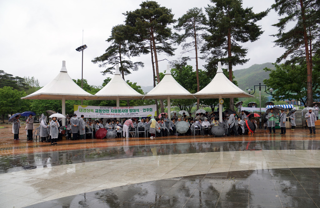 작성자가야돌 작성시간 19.04.28 대구 수성못 상화동산에서 개최된 "대구광역시 교통사고 사망자 30 줄이기 " 범 시민 캠페인 행사에 봉사단원들은 차가운 봄비를 맞으면서도 끝까지 참여하여 성공적으로 마친데 대하여 정말 자랑스럽게 생각합니다.