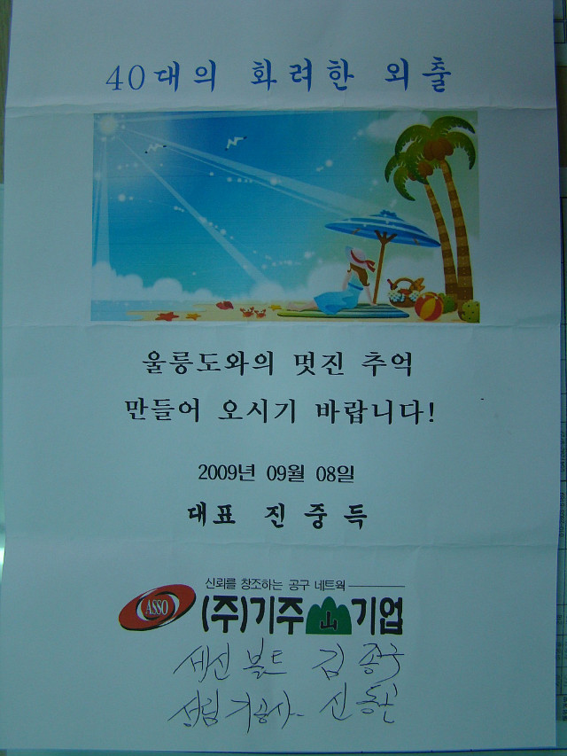 이번금요일 울릉도로 가을여행을 떠나는 부인회원들을 위해