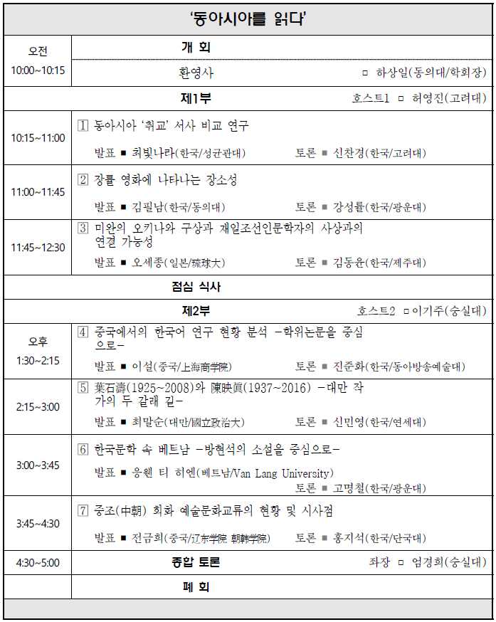 ■주제 : ‘동아시아를 읽다’ ■ 방식 : 비대면 온라인/Zoom 회의실