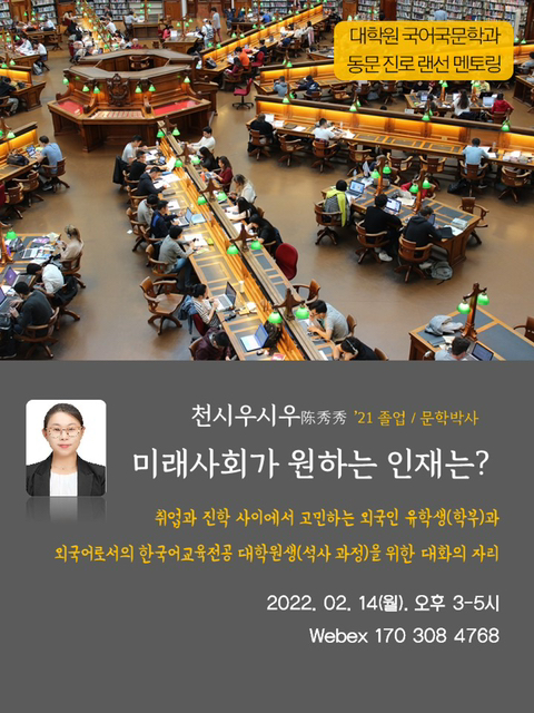 대학원과 학부의 외국인 유학생을 대상으로 한 진학/취업 특강입니다.