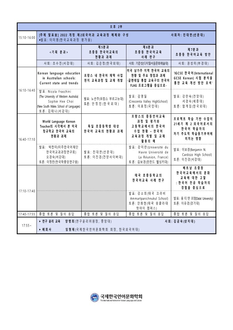 - 주제 : 해외 초중등 한국언어문화교육의 쟁점과 과제