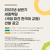[엑스퍼트컨설팅] 2022년 상반기 세종학당(국외 파견 한국어 교원) 선발 공고 홍보건 작성자 왕중기 작성시간 21.12.02 조회수 51