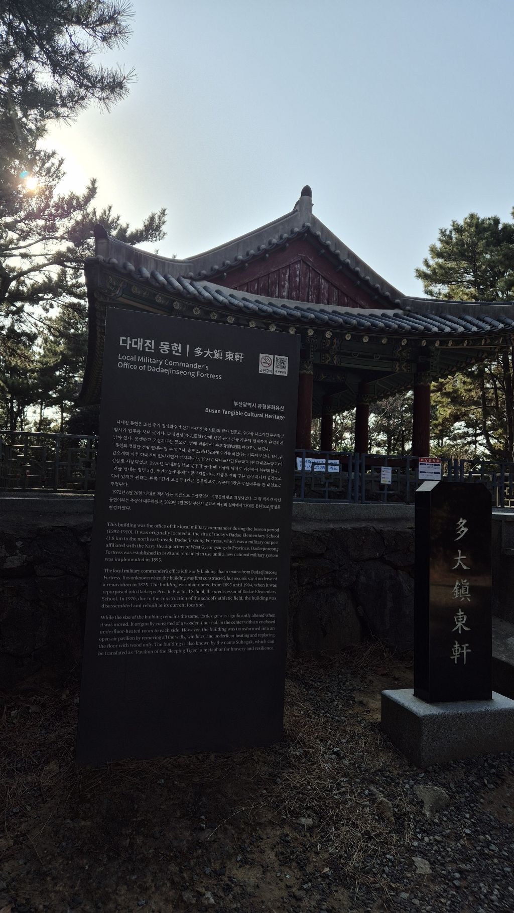 있었다.임진왜란때 전사한 정운 장군을 기리는 비석이 있고 정운장군의 8대손이 다대포첨사로 왔을때 정조의 허가를 받아 지었단다.그 높은곳까지 걸어갔던것이 마냥 기쁜것은 조상의 기념탑을 세운 그 후손의 갸륵한 역사또한 의미가 있다는 생각을 해 본다.