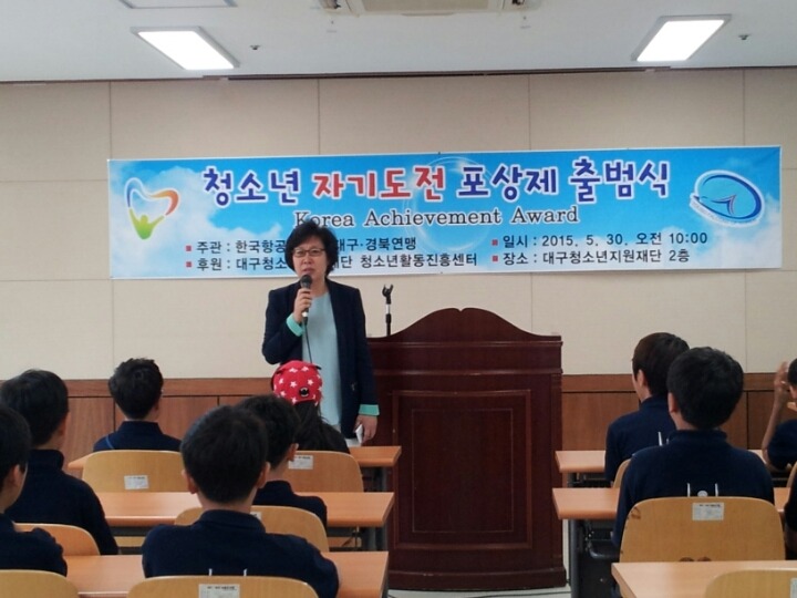 2015.5.30(토) 대구경북연맹 단원 및 학부모님들이 참석한 가운데 청소년자기도전성취포상제 출범식이 대구청소년지원재단에서 열렸습니다.