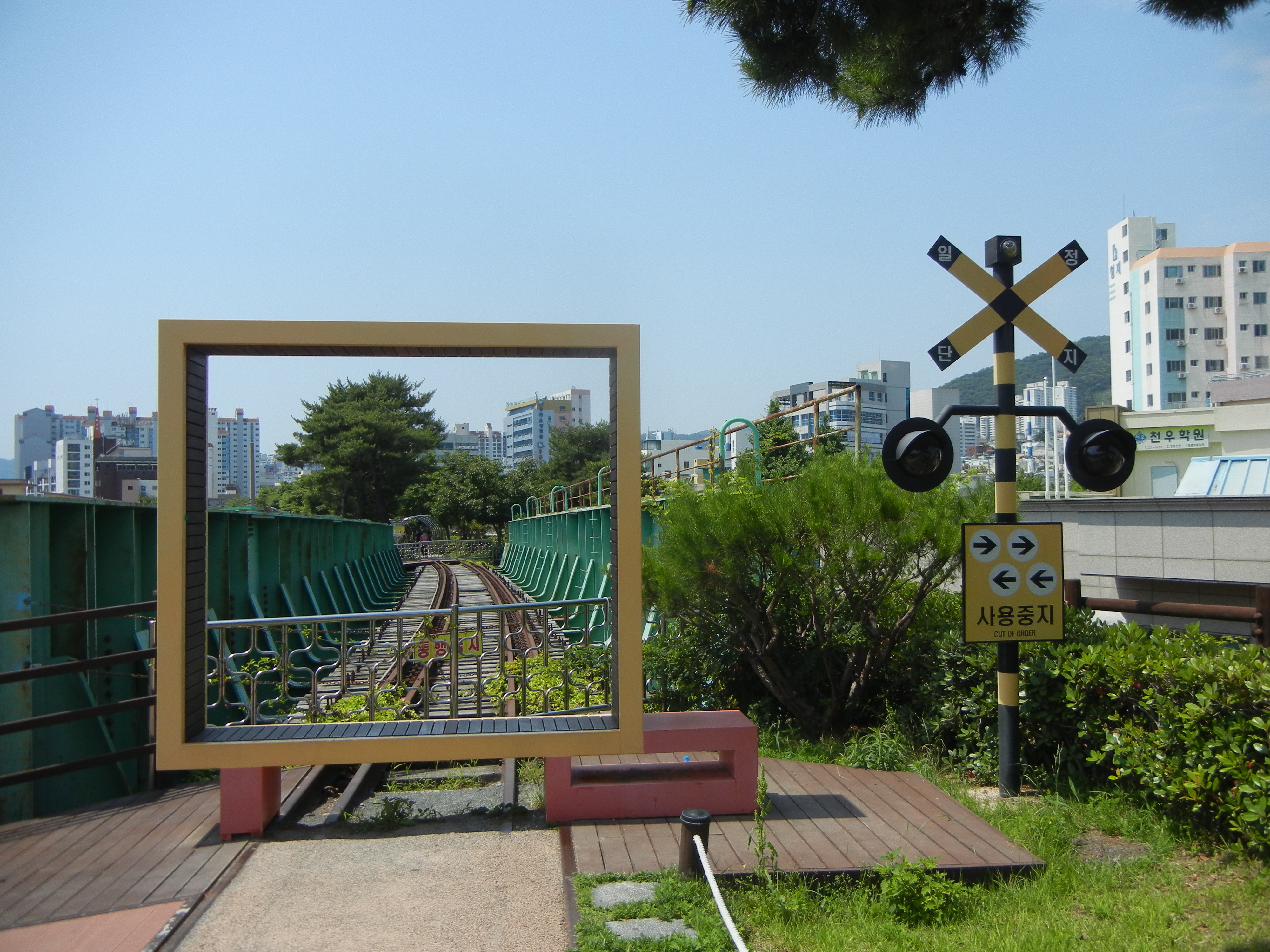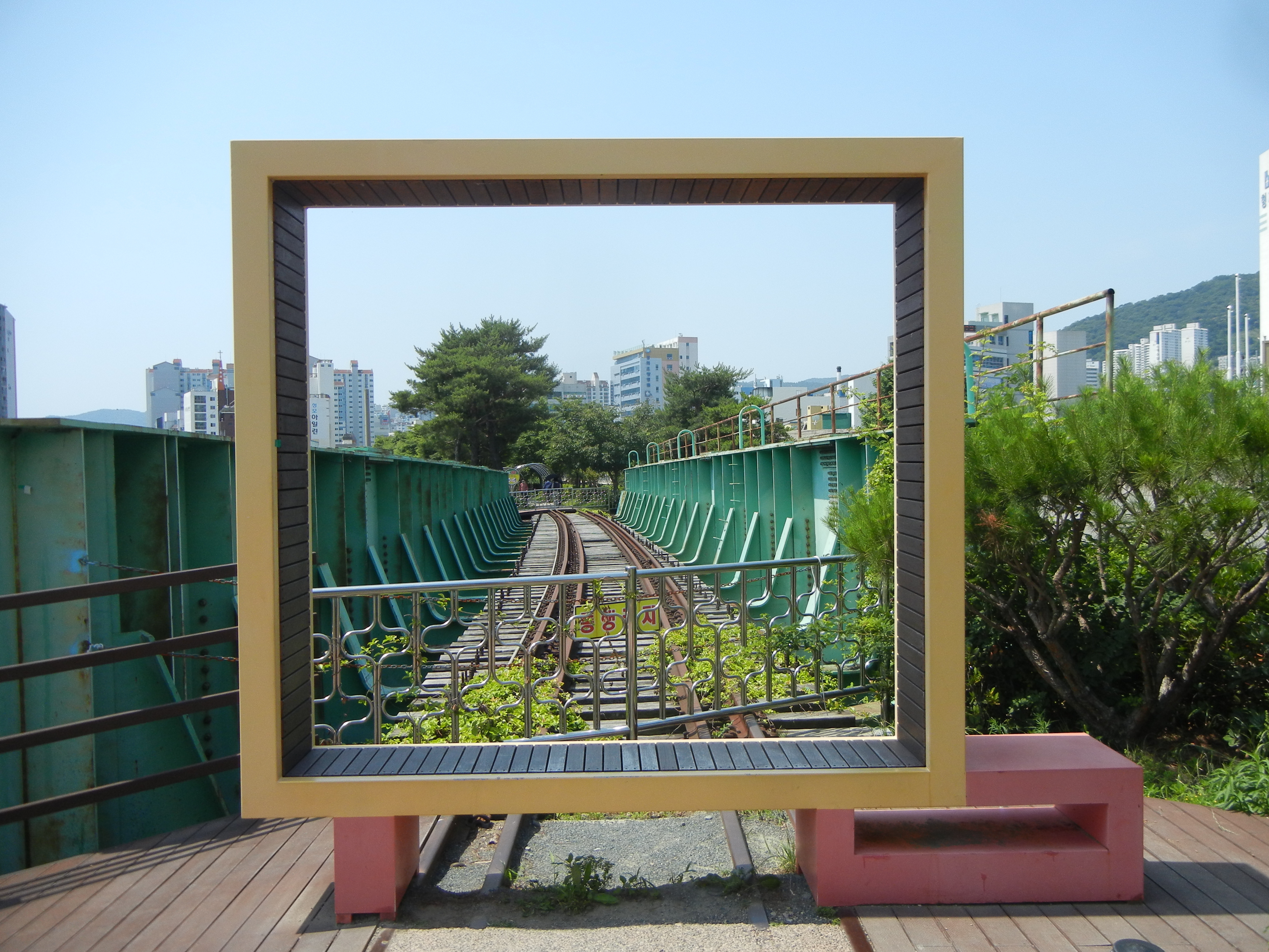 임항선 철로가 끝나는 지점을 돋보이게 살리면서 포토죤을 설치.