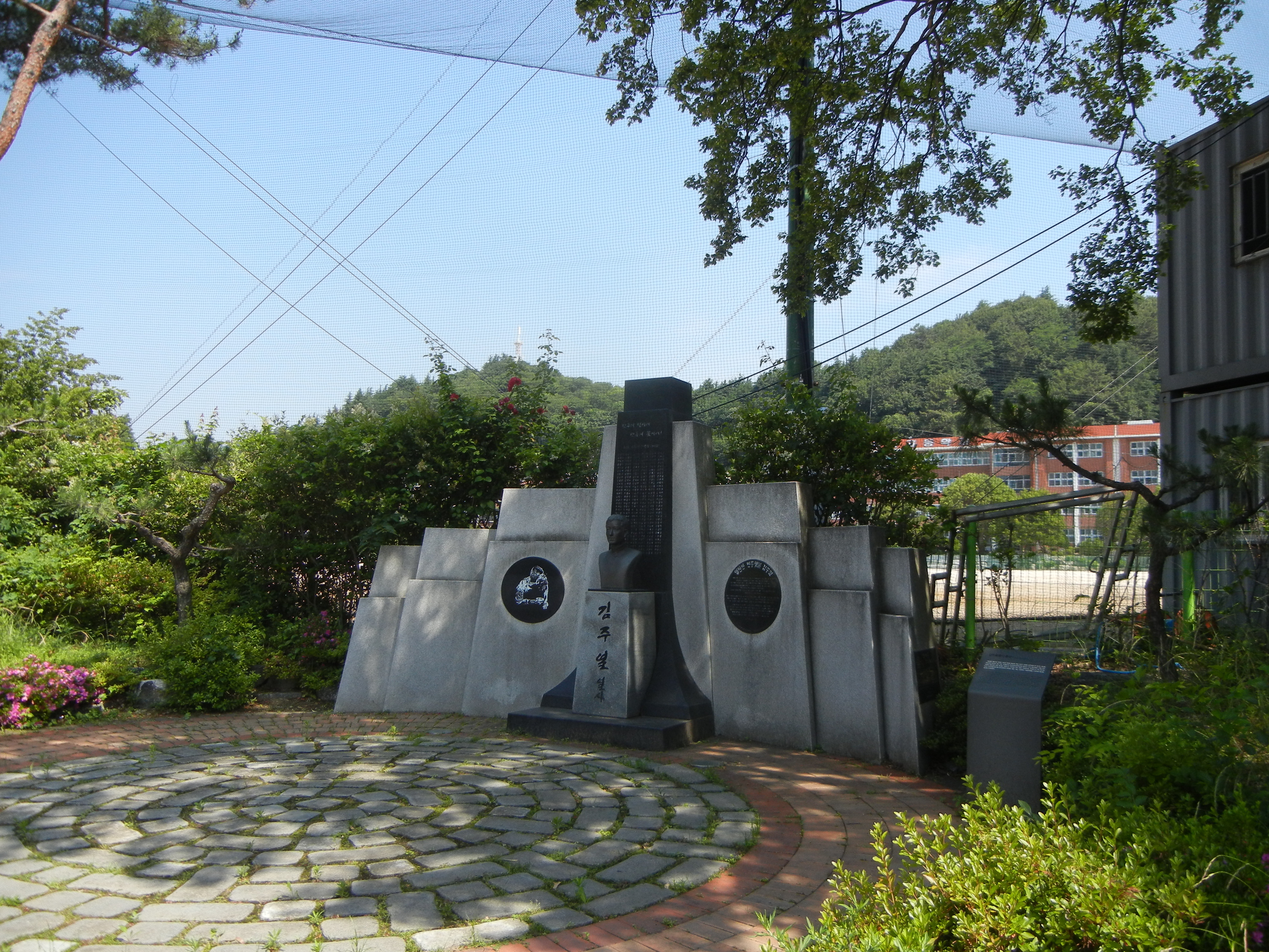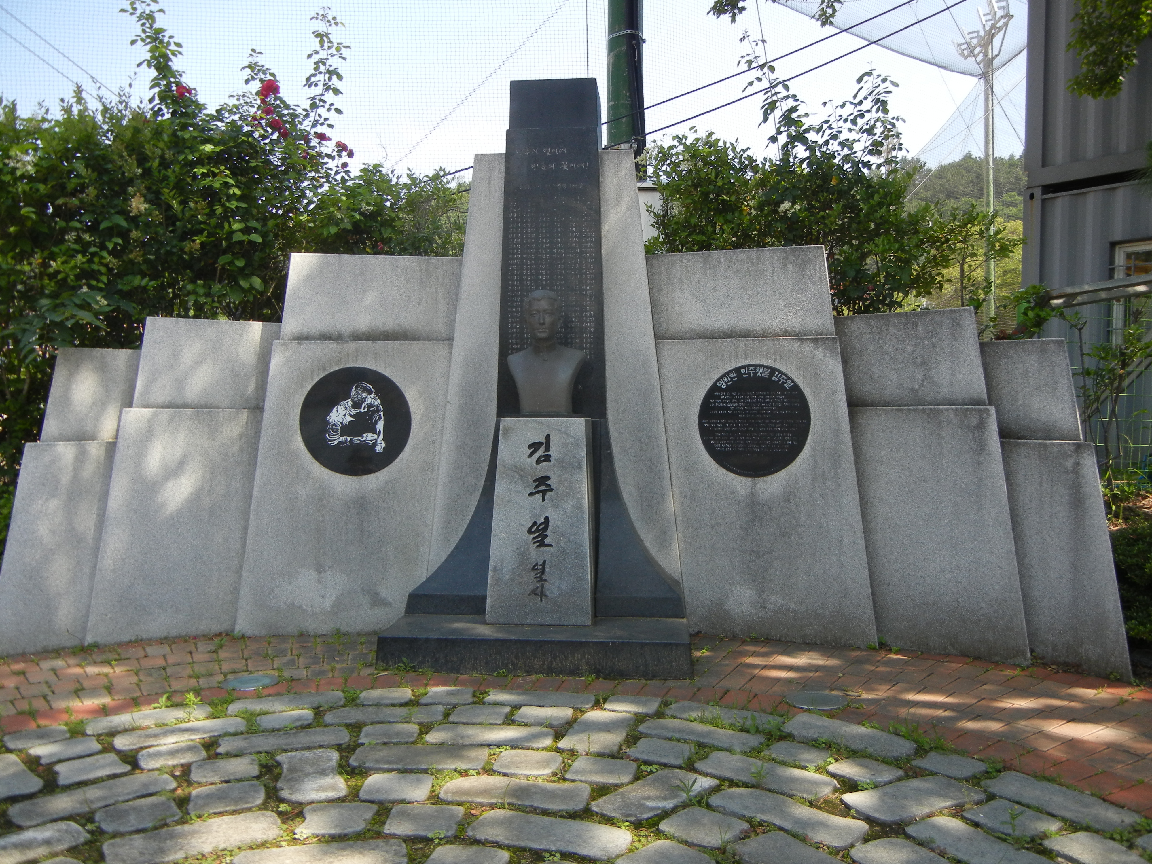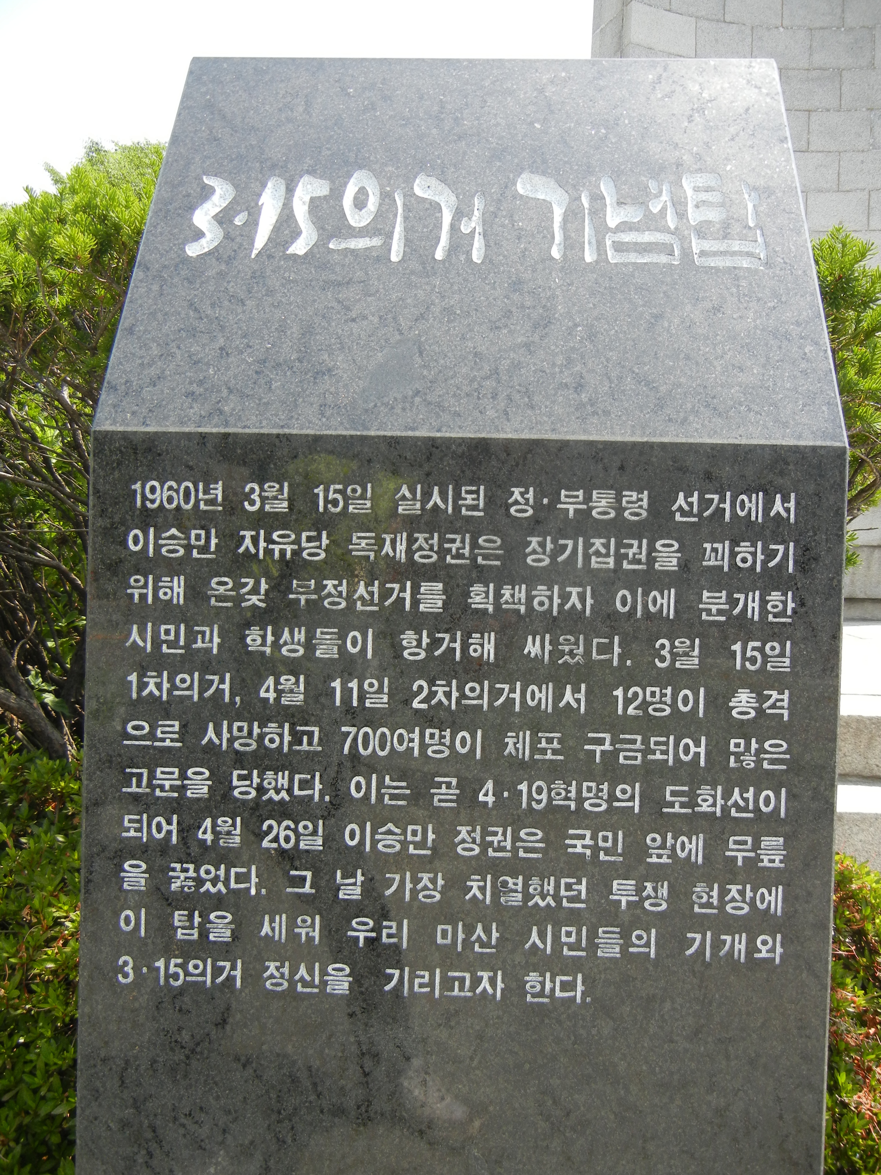 합포초등학교 앞의 충효비를 지나면 마산민주화의 상징인 김주열열사츙상비 앞에서 묵념. 뒤쪽은 용마고교.