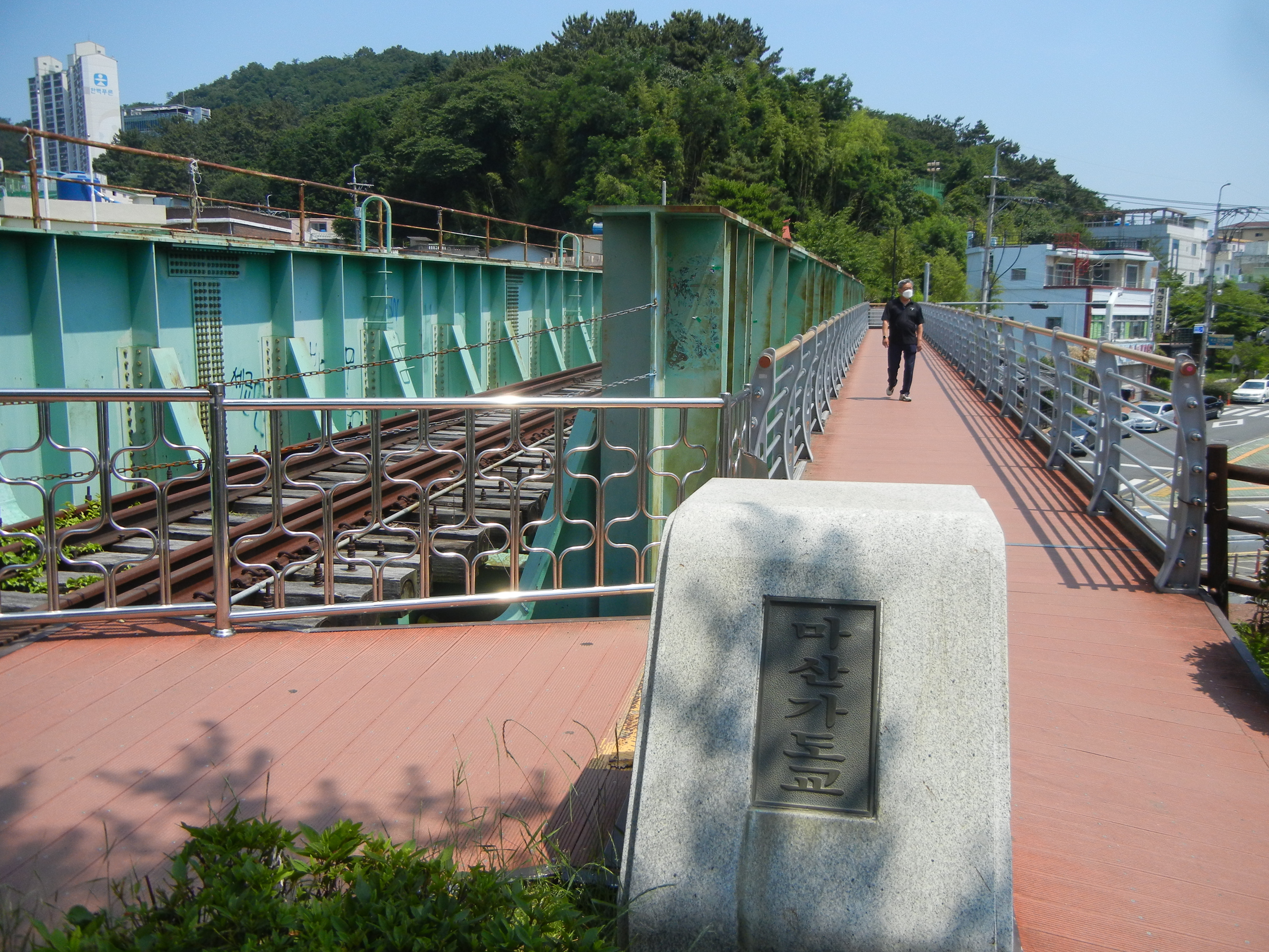 - (계단위로 올라와 그린웨이)-장미꽃 터널-마산가도교-