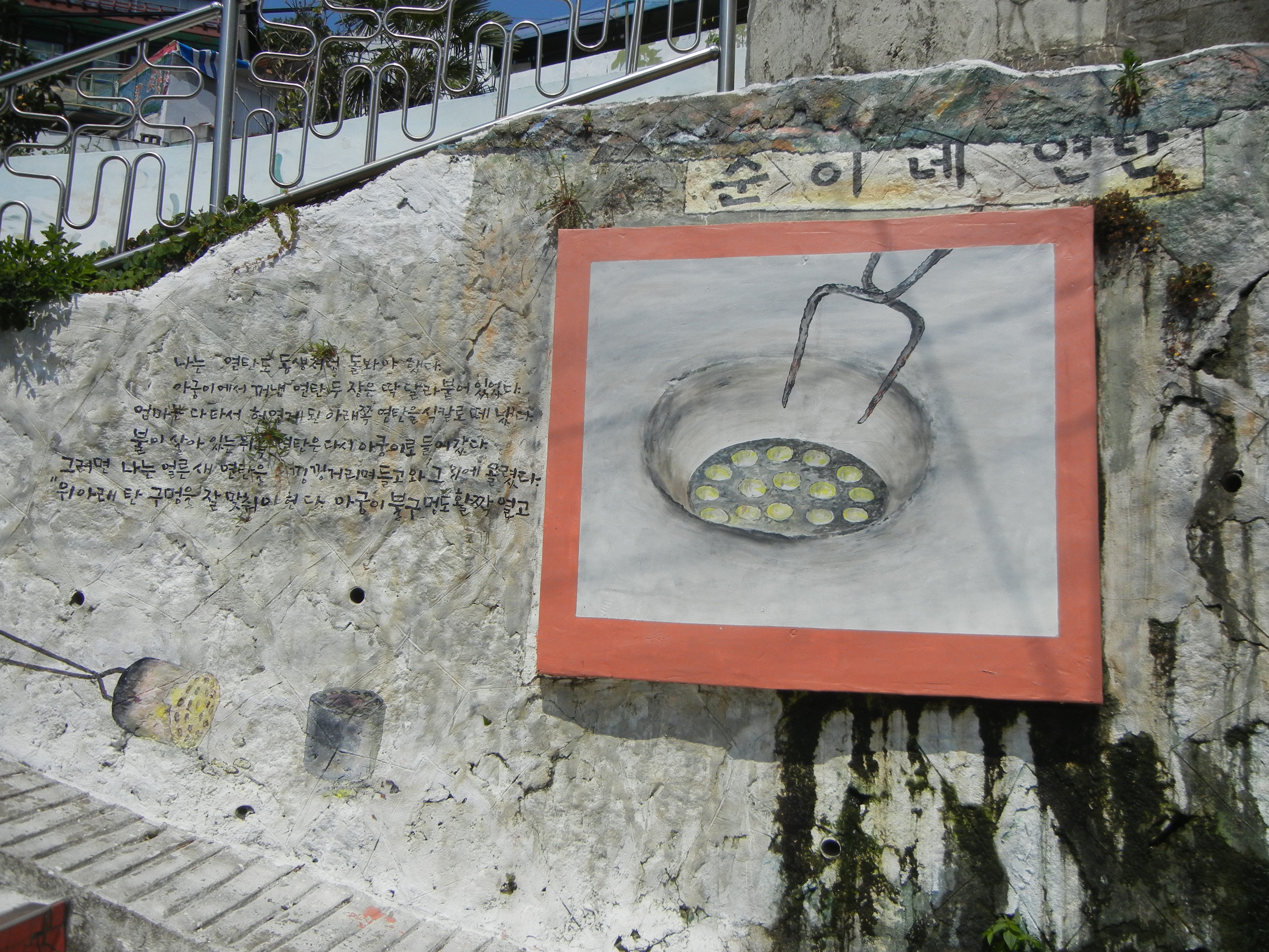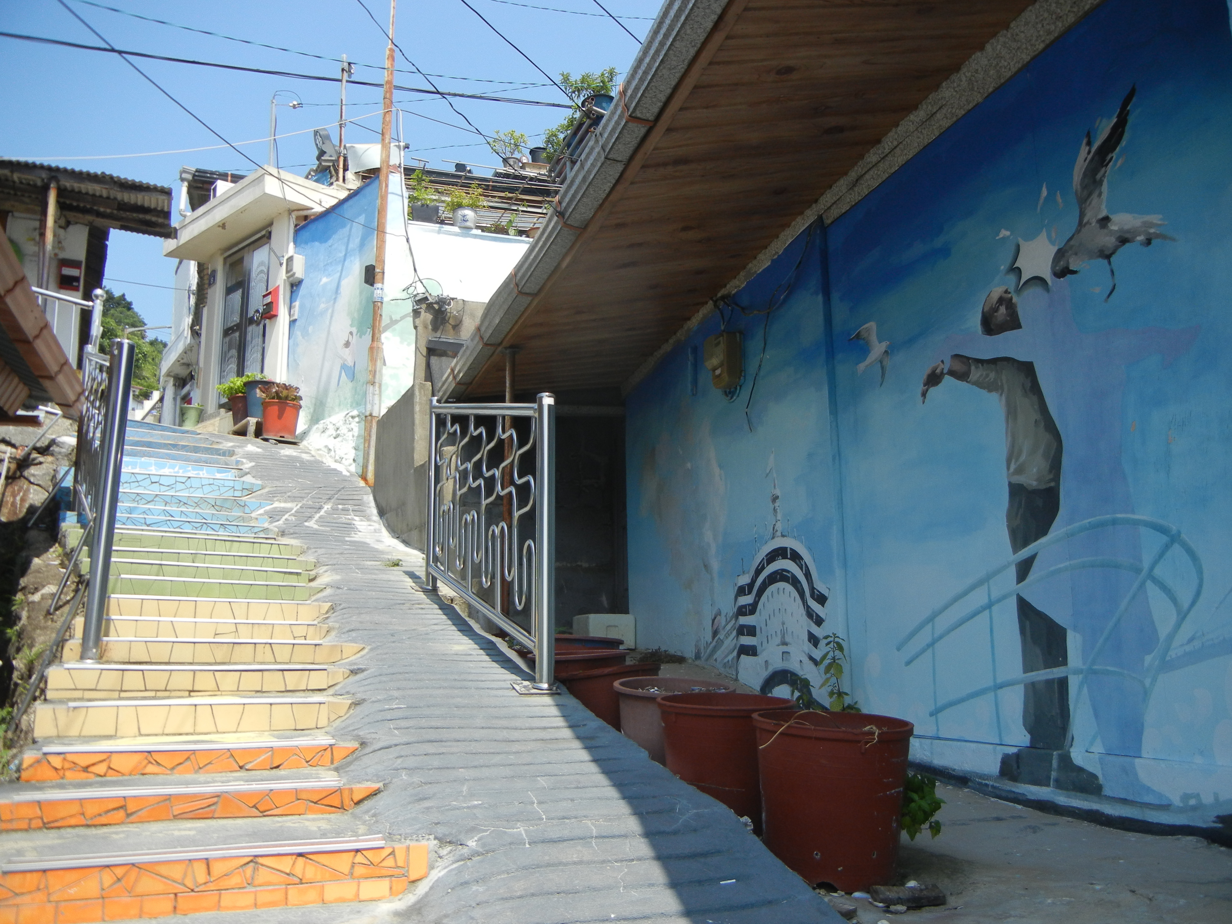 임항선그린웨이 길을 잠시 벗어나 우측으로 비탈진 꼬무랑길 올라가 벽화마을 둘러보고 내려오기로 한다.