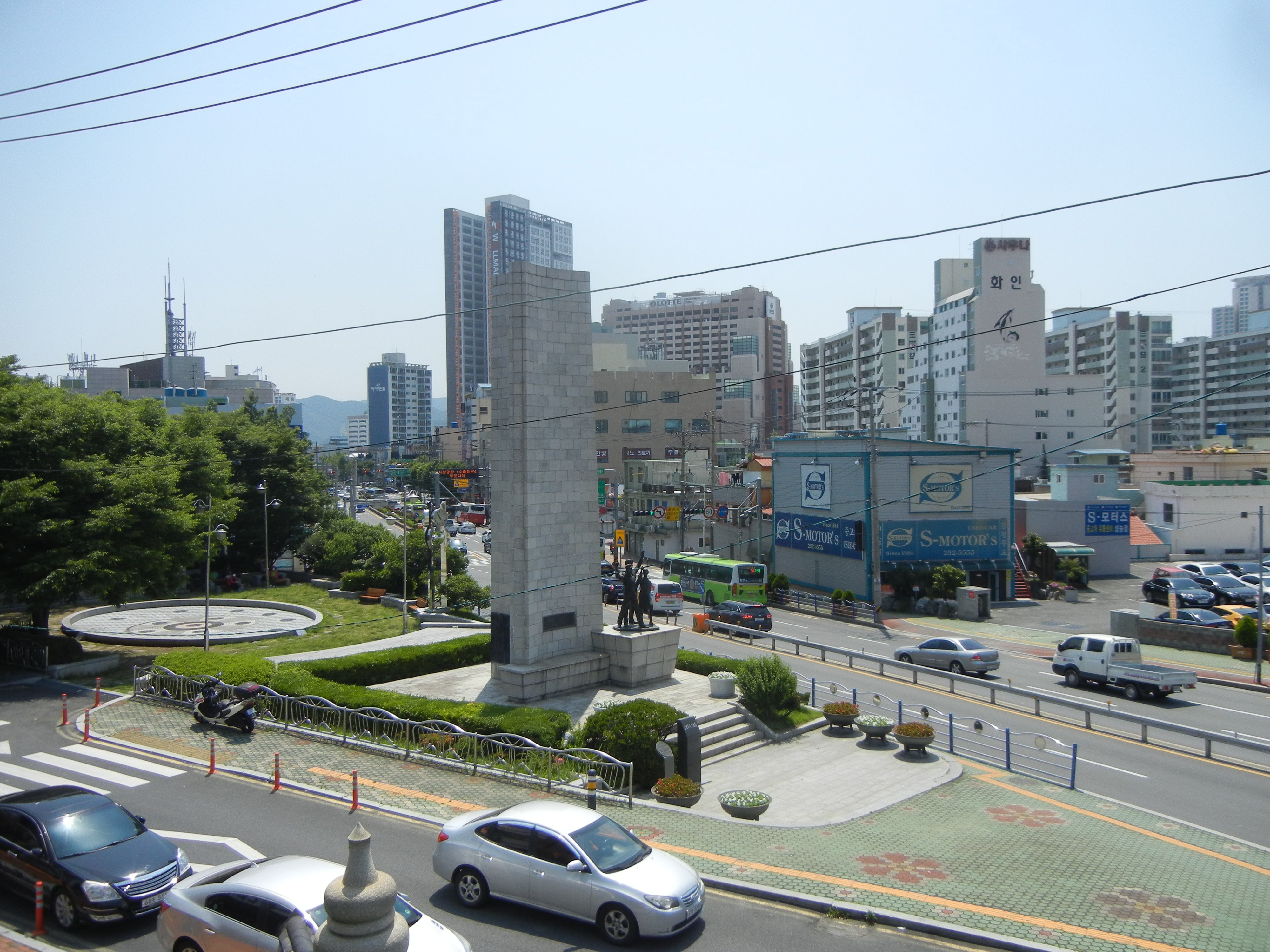 6호광장 교차로의 개선문돌탑과 용마상