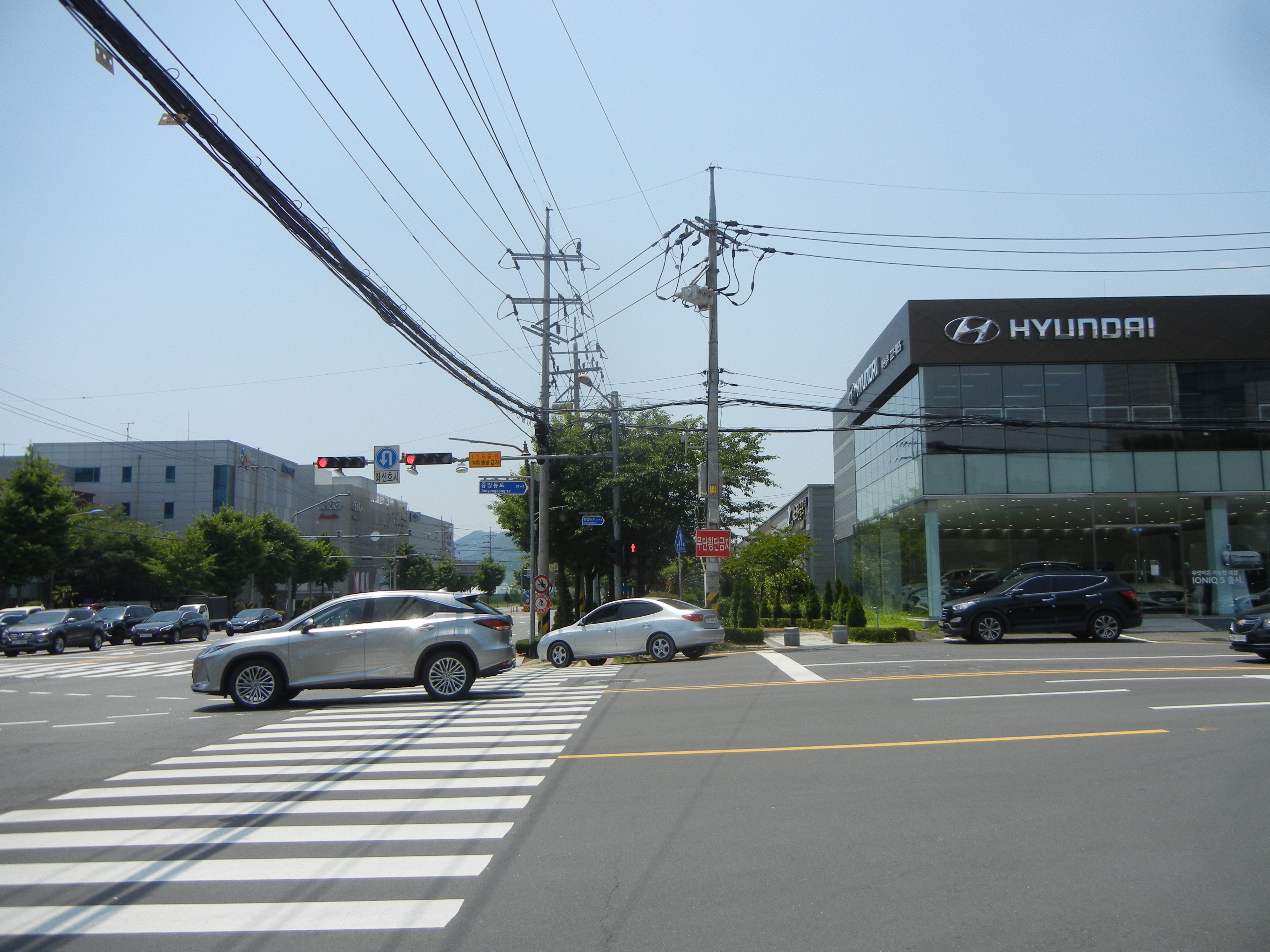 코스가 좌측으로 안내되었지만 무의미한 길일 걷게하고 현대비엔지스틸에서 유턴해서 되돌아가 다리를 건너게한다.