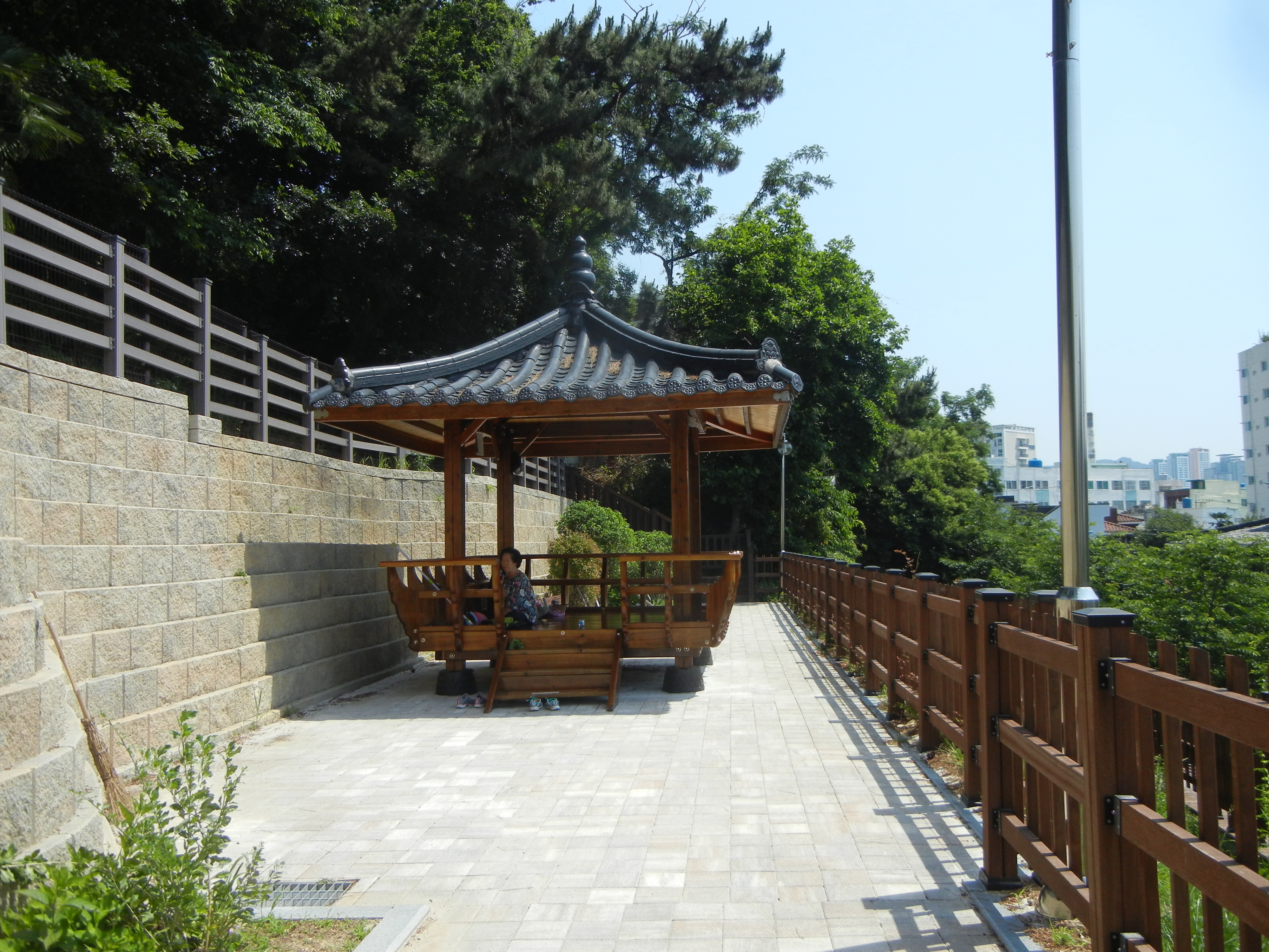 임함션그린웨이에서 계단으로 내려가 몽고정과 3.15의거 기념비를 보고 다시 계단을 올라와 그린웨이을 속행.