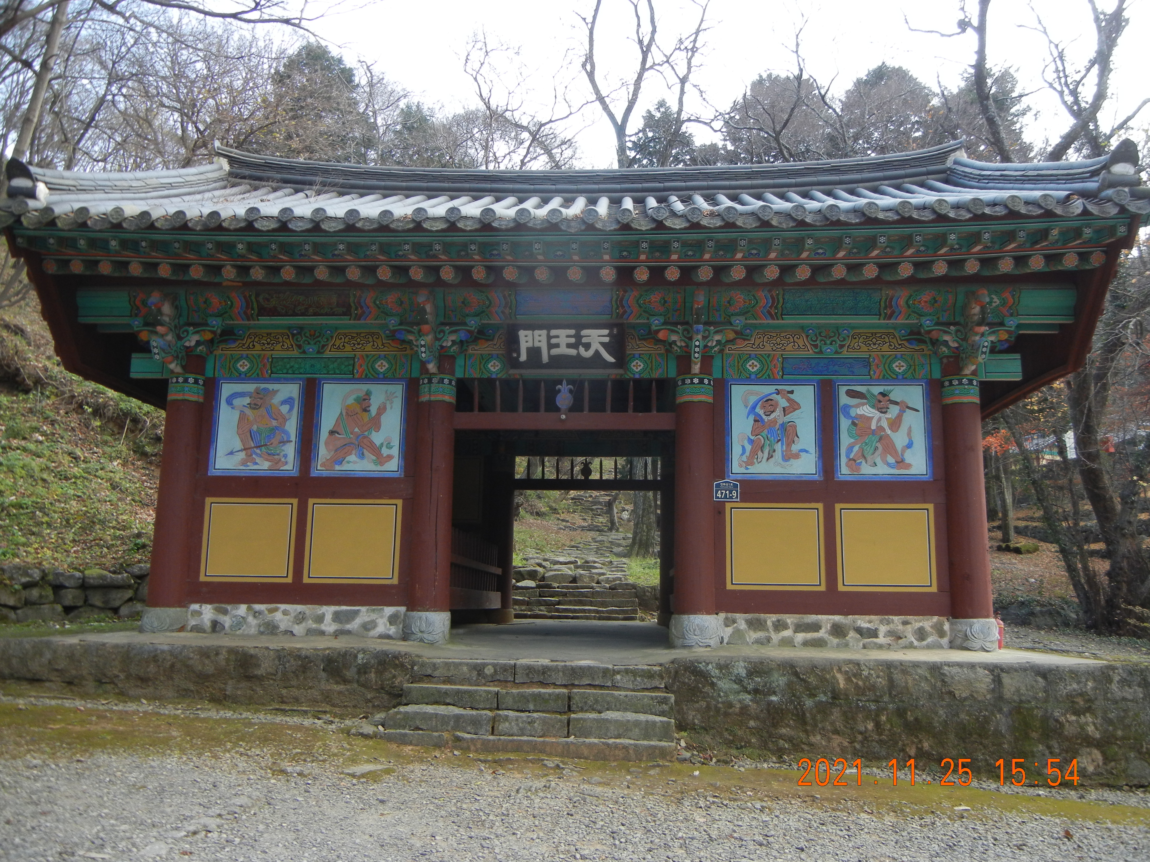하산하여 옥천사 사찰입구 천왕문 도착하니 오후 3시54분. 30분내로 옥천사 다 보고 주차장까지 가야.