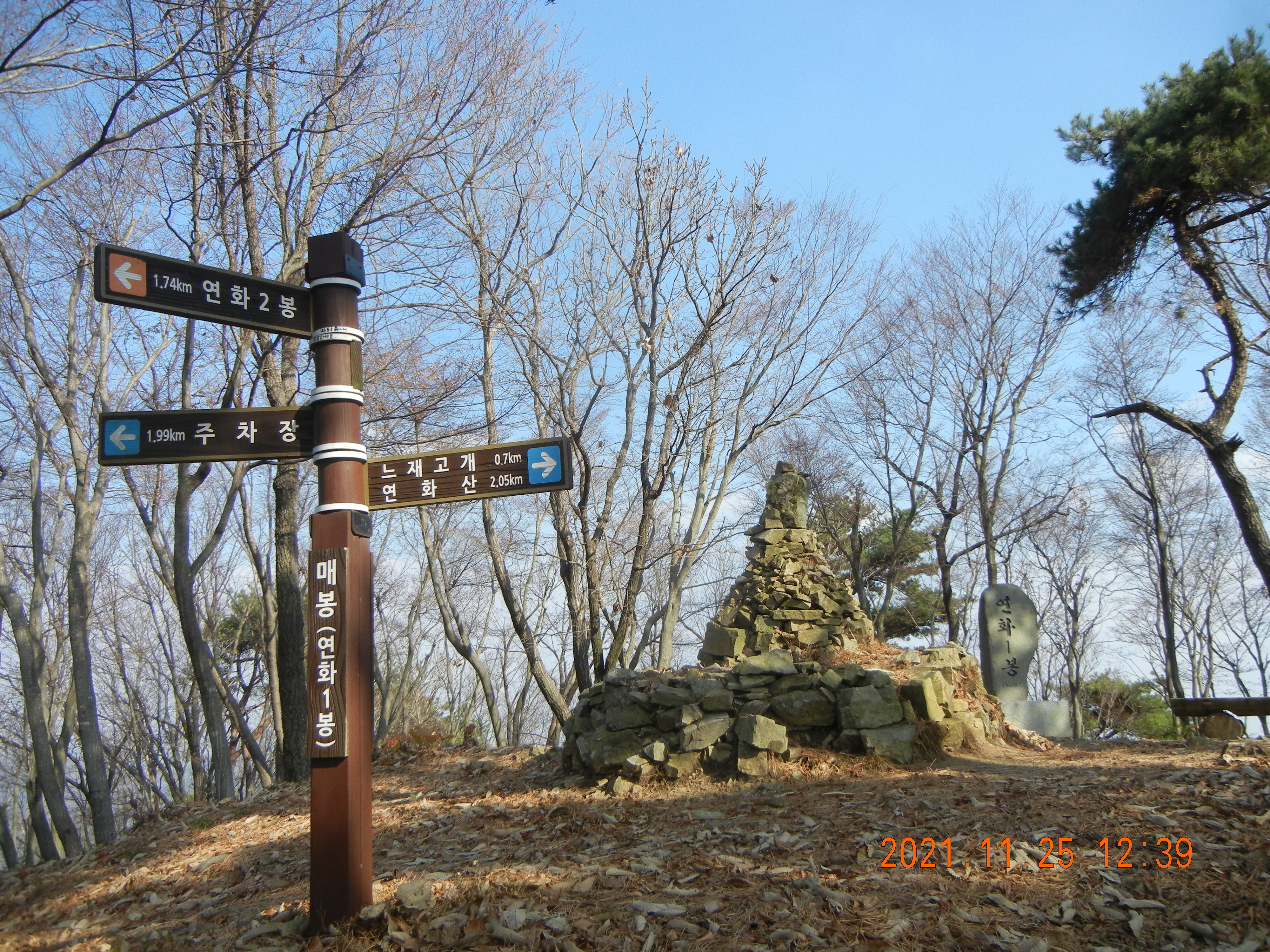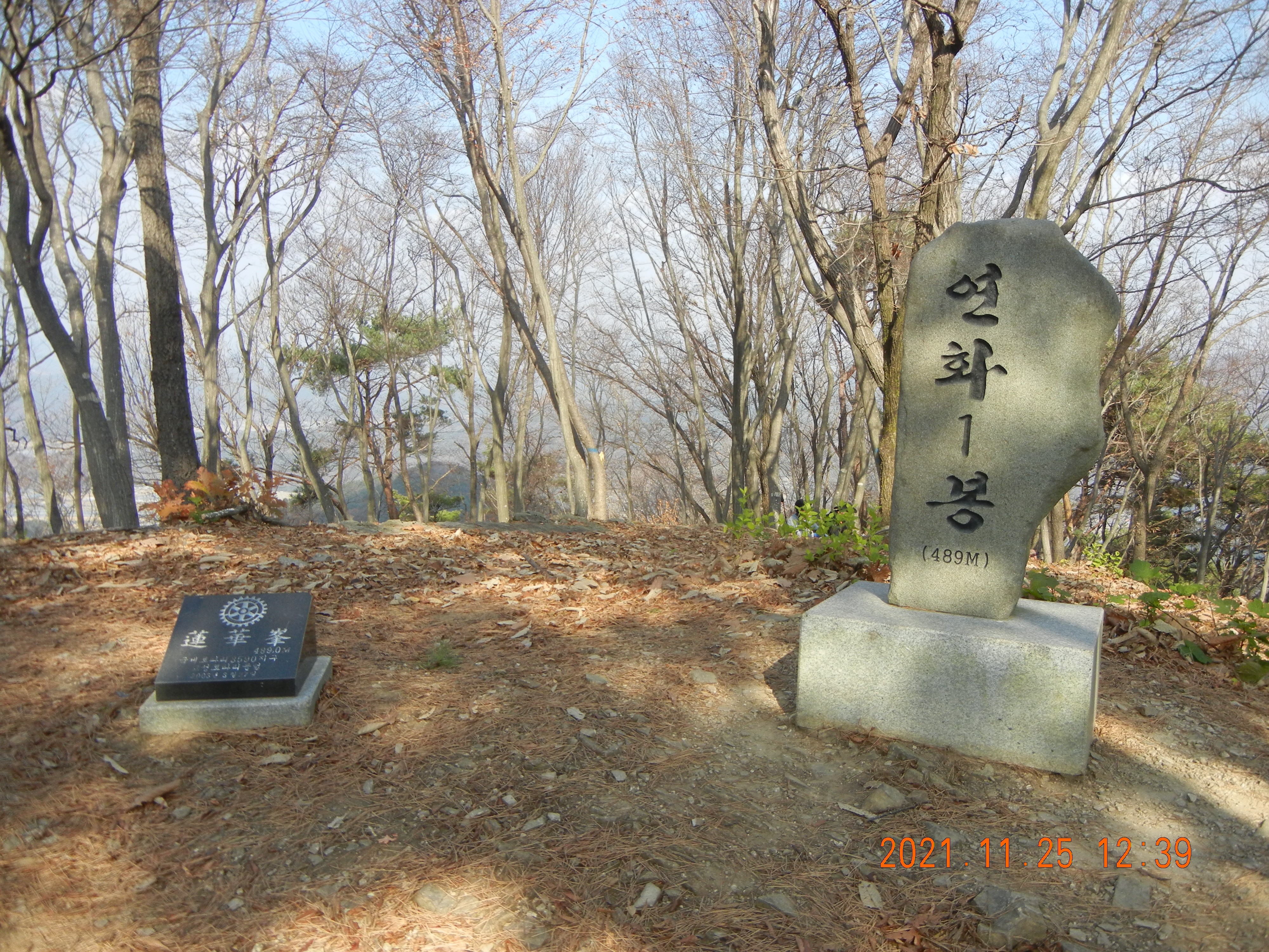 ○ ▲연화1봉(=매봉487m)(정상석489m/蓮華峰표석/돌탑)(중식)
