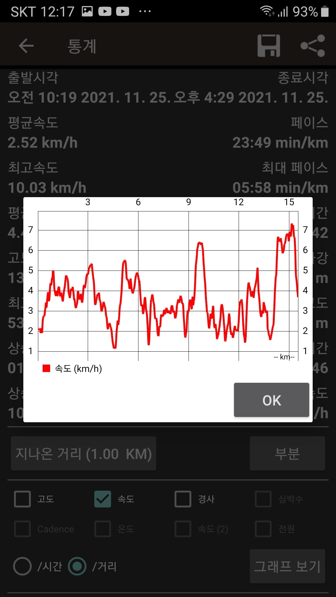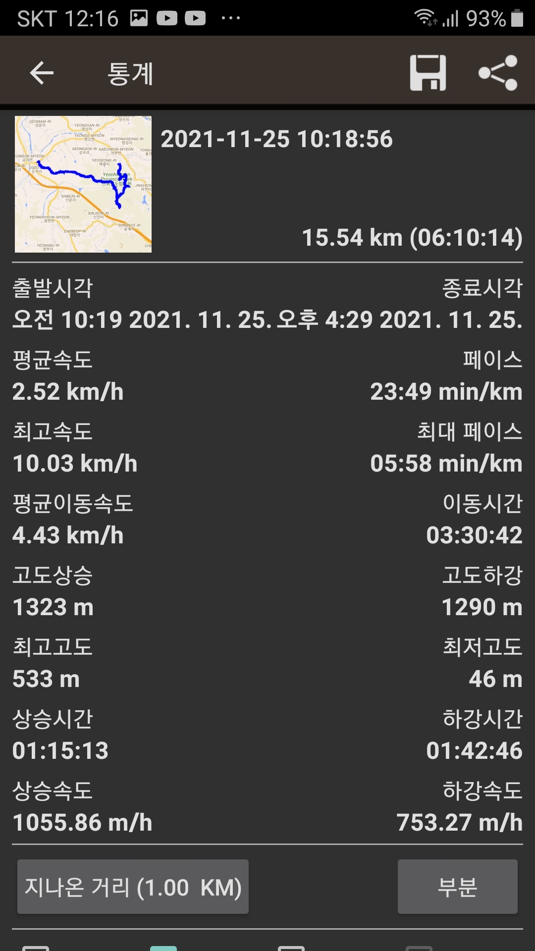 - oruxmaps 도상거리 : 15.54km (산악회 안내 11km)