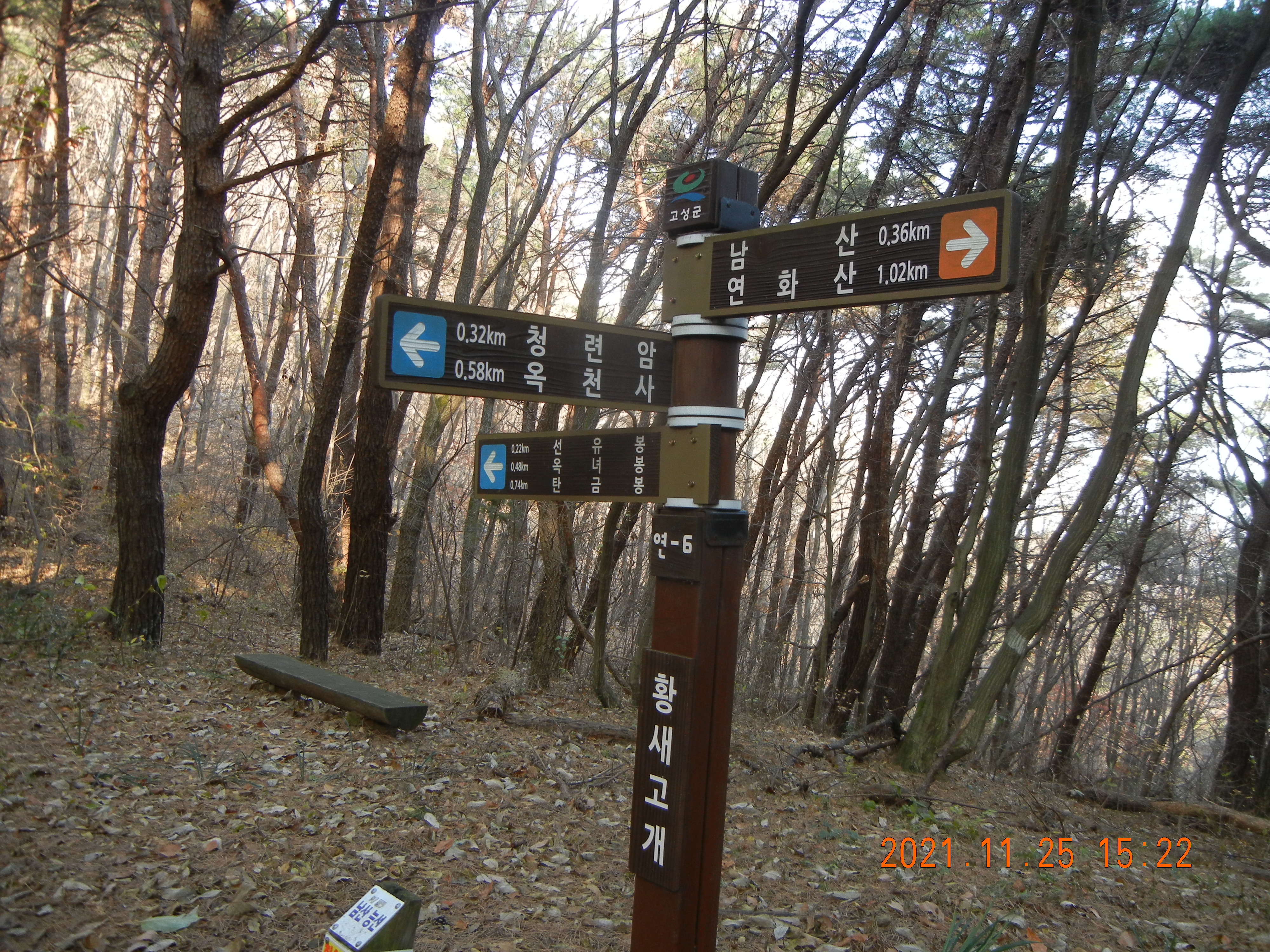 다시 갈림길로 되돌아와 급경사 내림길을 내리면 황새고개. 산악회는 여기서 청련암으로 하산을 안내.