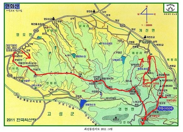 - 산악회 진행코스 (갓골산 봉화대-연화2봉-1봉-연화산-남산-
