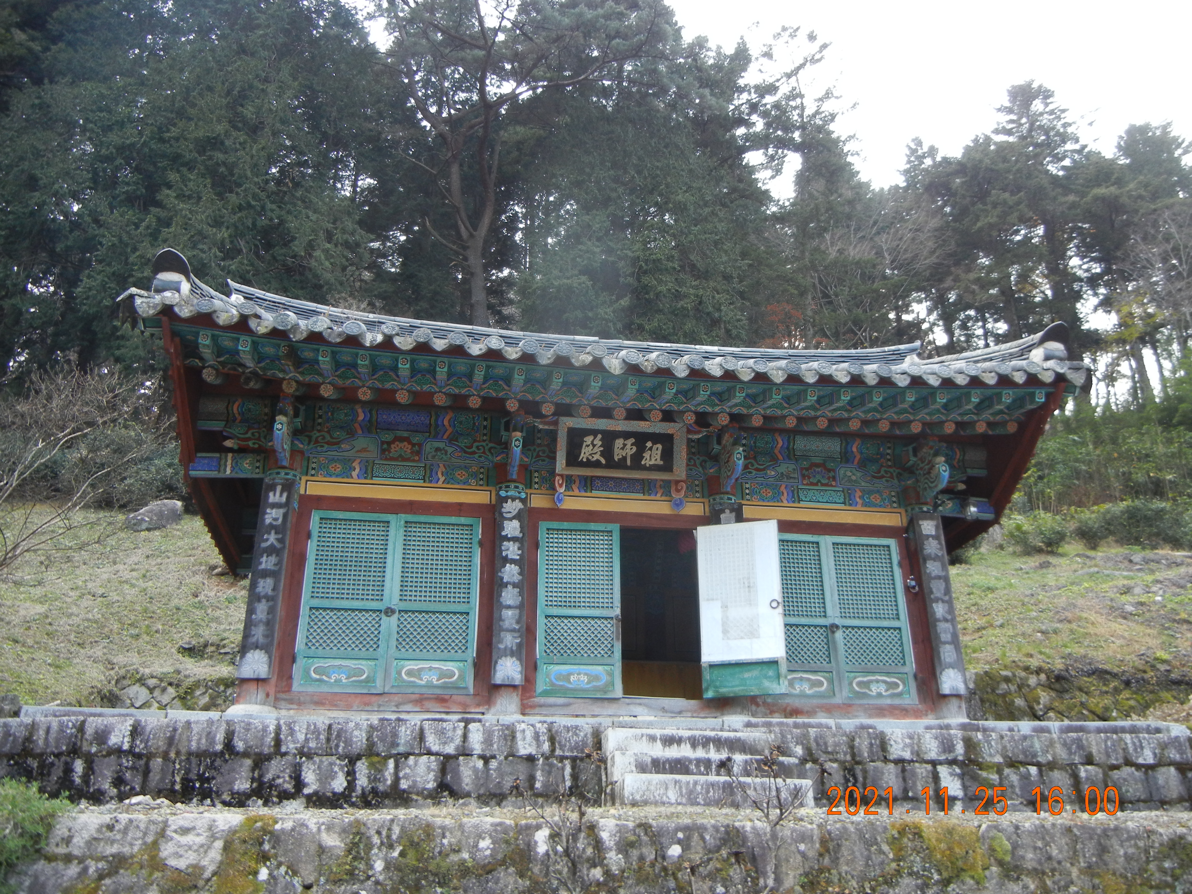 ▲조사전엔 창건주 의상대사 영전과 옥천사에서 출가 및 좌탈입망(坐脫入亡:앉은채 입적)한 서응대사 영전 모심