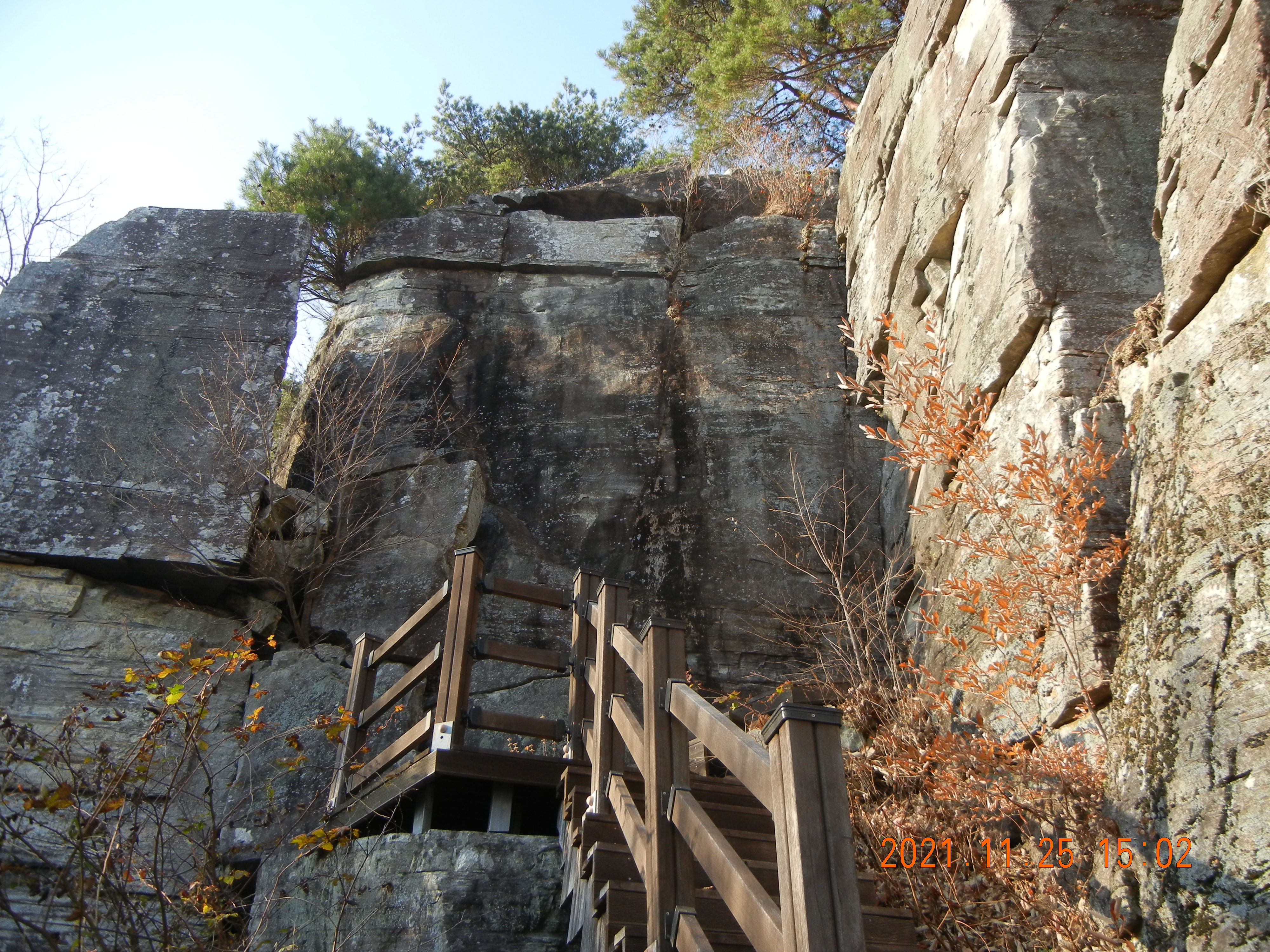 남산 정상에서 내려오다 갓바위 갈림에서도 산악회코스외 갓바위 갔다오기로