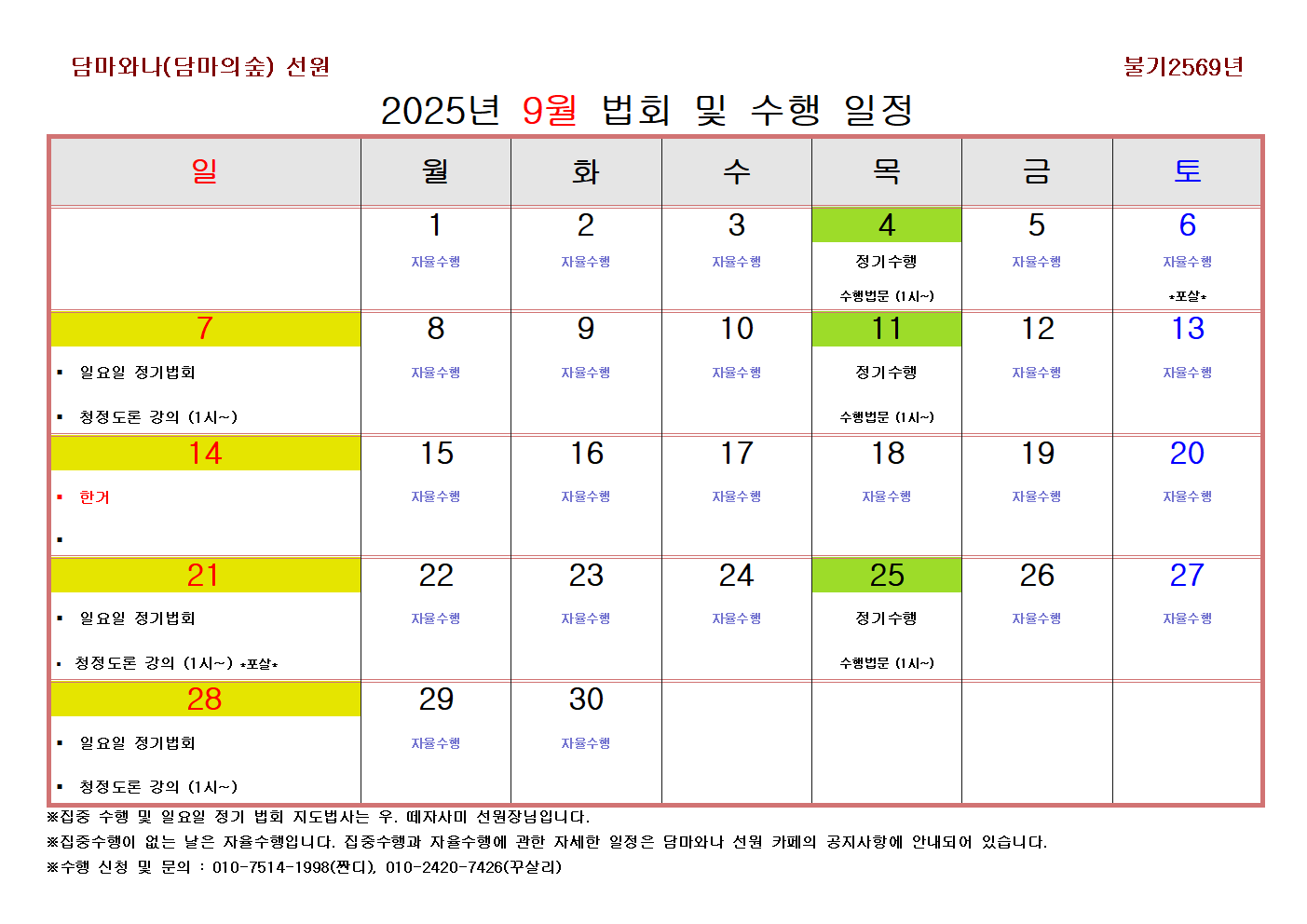 2025년 9월 수행일정 안내를 참조하시기 바랍니다.