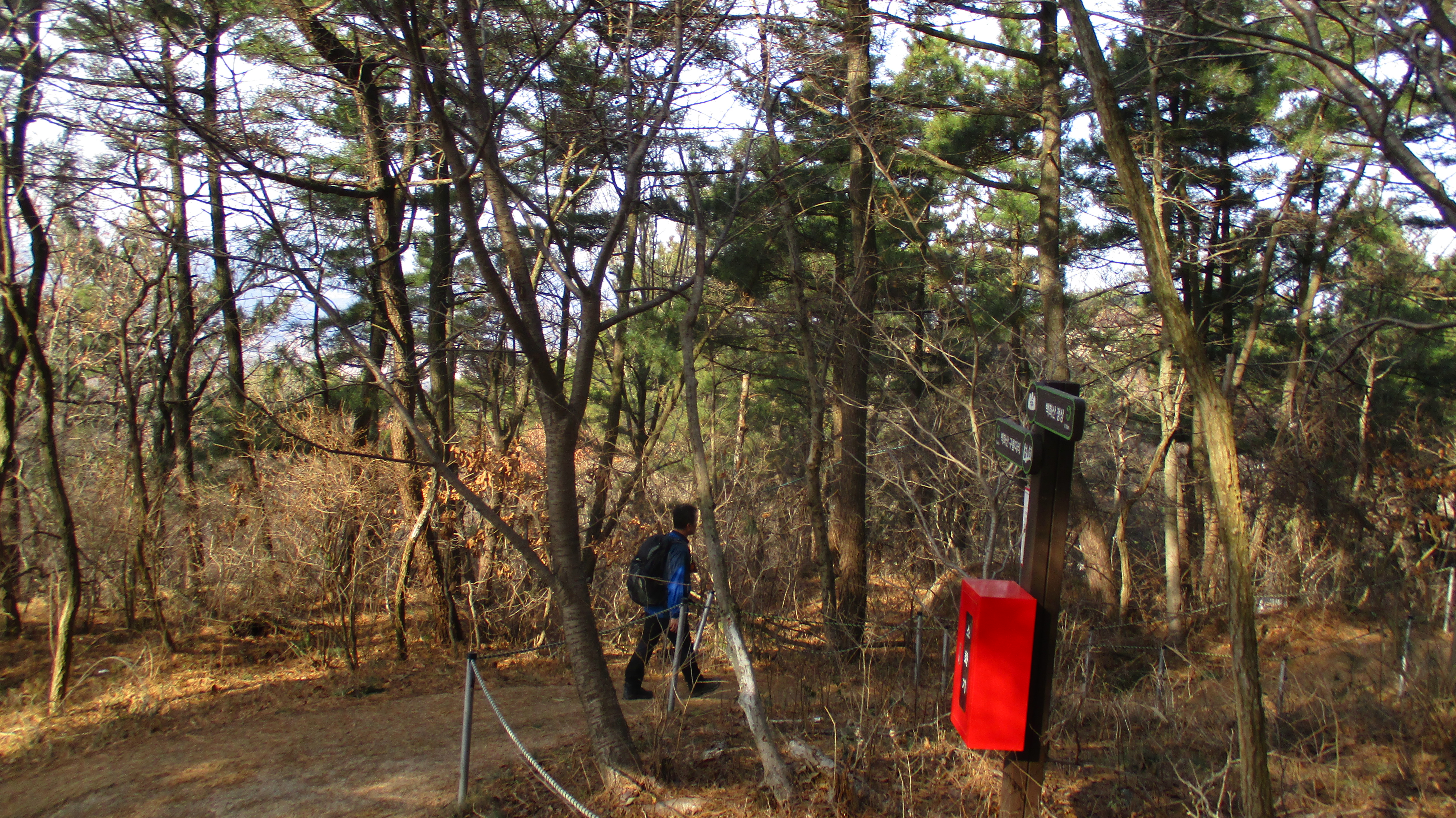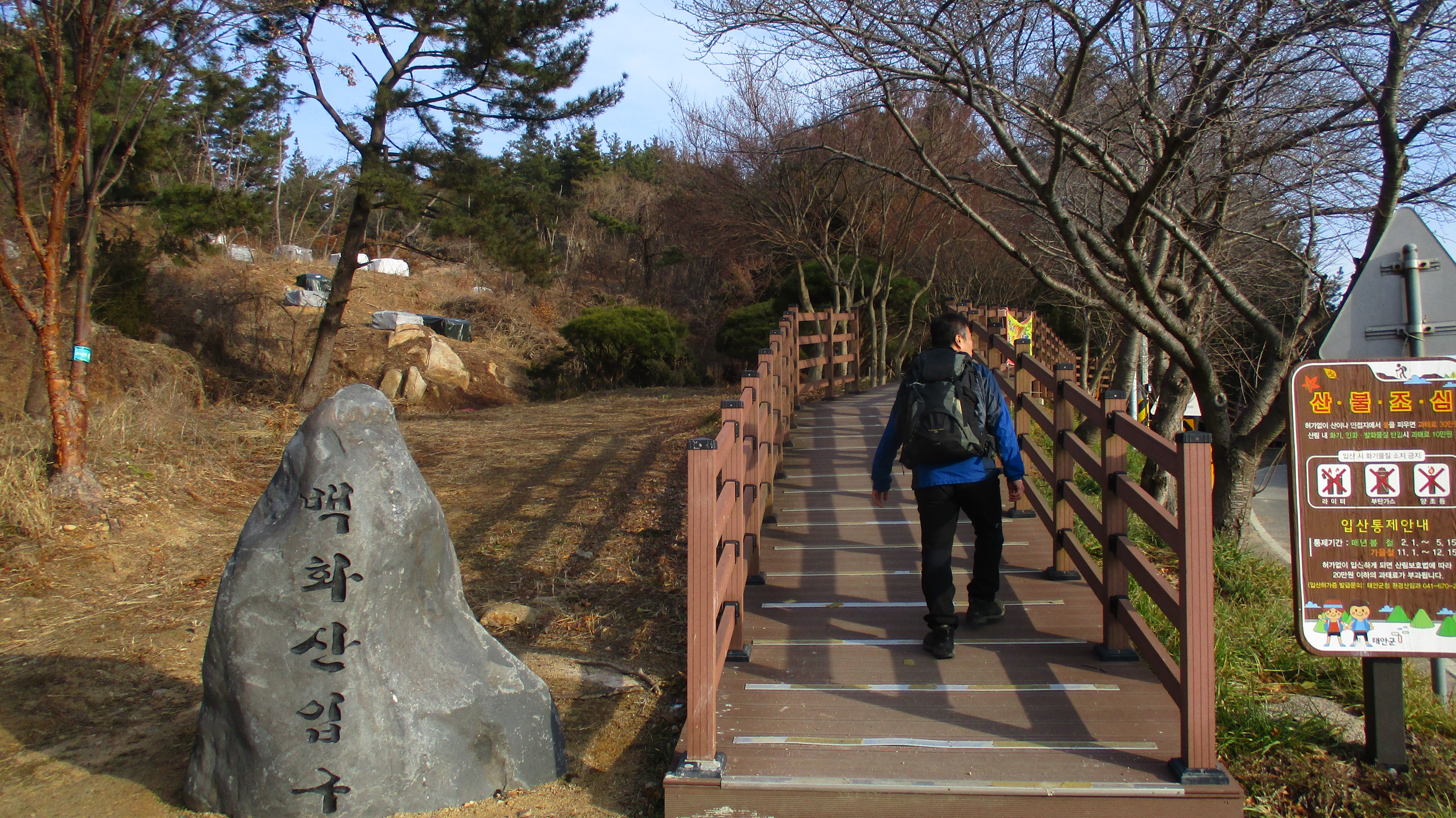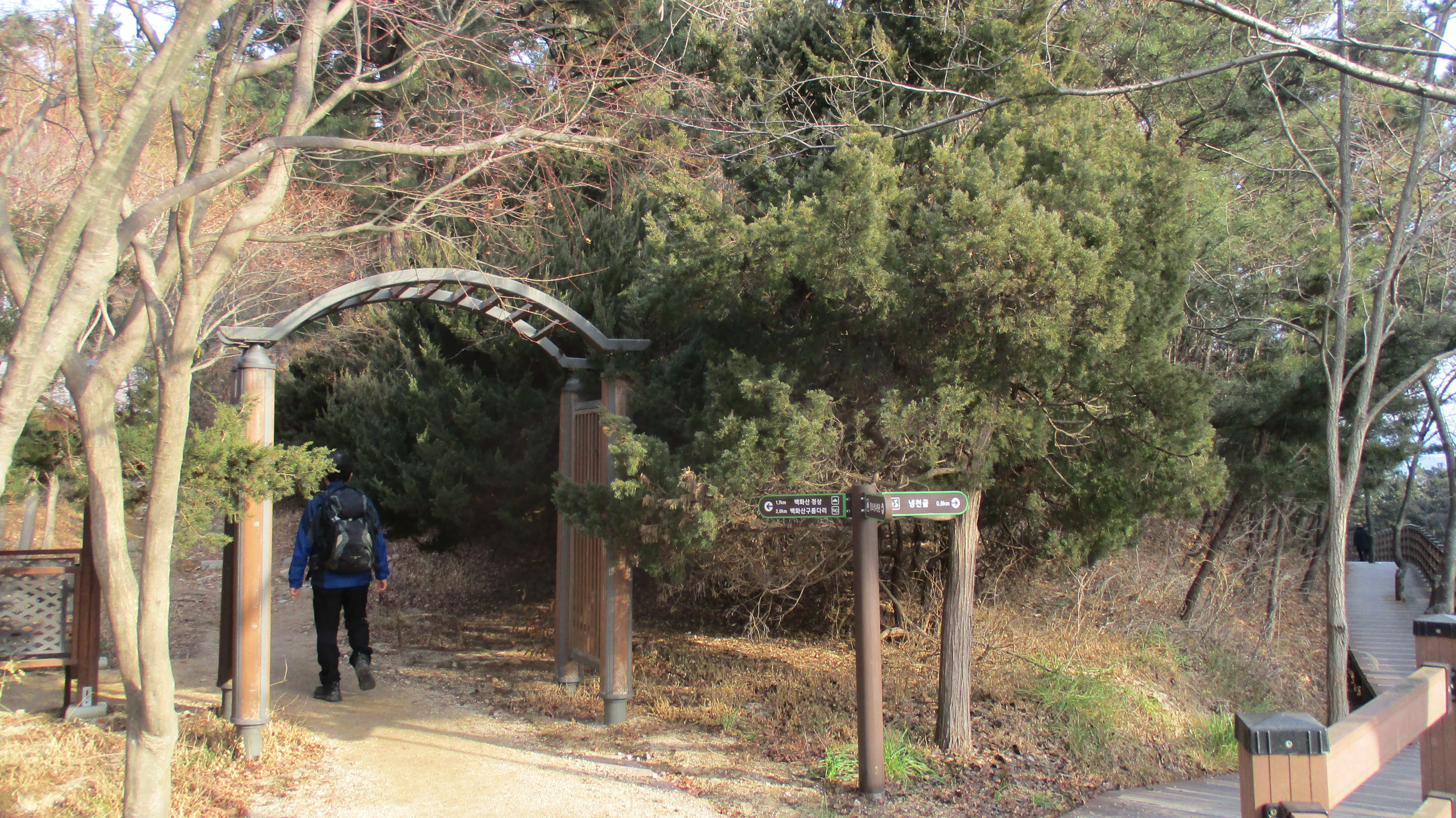 10:00 ; 데크입구에서 50m 정도 들어오면 갈림길이 나온다(청소년수련관/(직)냉천골0.8km/(좌)백화산정상1.7km,백화산구름다리2.0km) ; 좌측으로