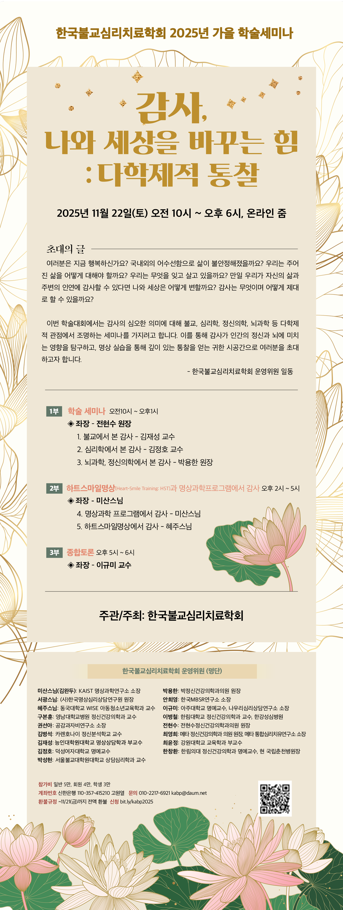 감사, 나와 세상을 바꾸는 힘: 다학제적 통찰 세미나 안내 - 11/22토 온라인 작성자마몸|작성시간25.11.17|조회수6 목록 댓글 0 글자크기 작게가 글자크기 크게가 다음검색 현재 게시글 추가 기능 열기 북마크 공유하기 신고 센터로 신고 댓글 댓글 0 댓글쓰기 답글쓰기 댓글 리스트