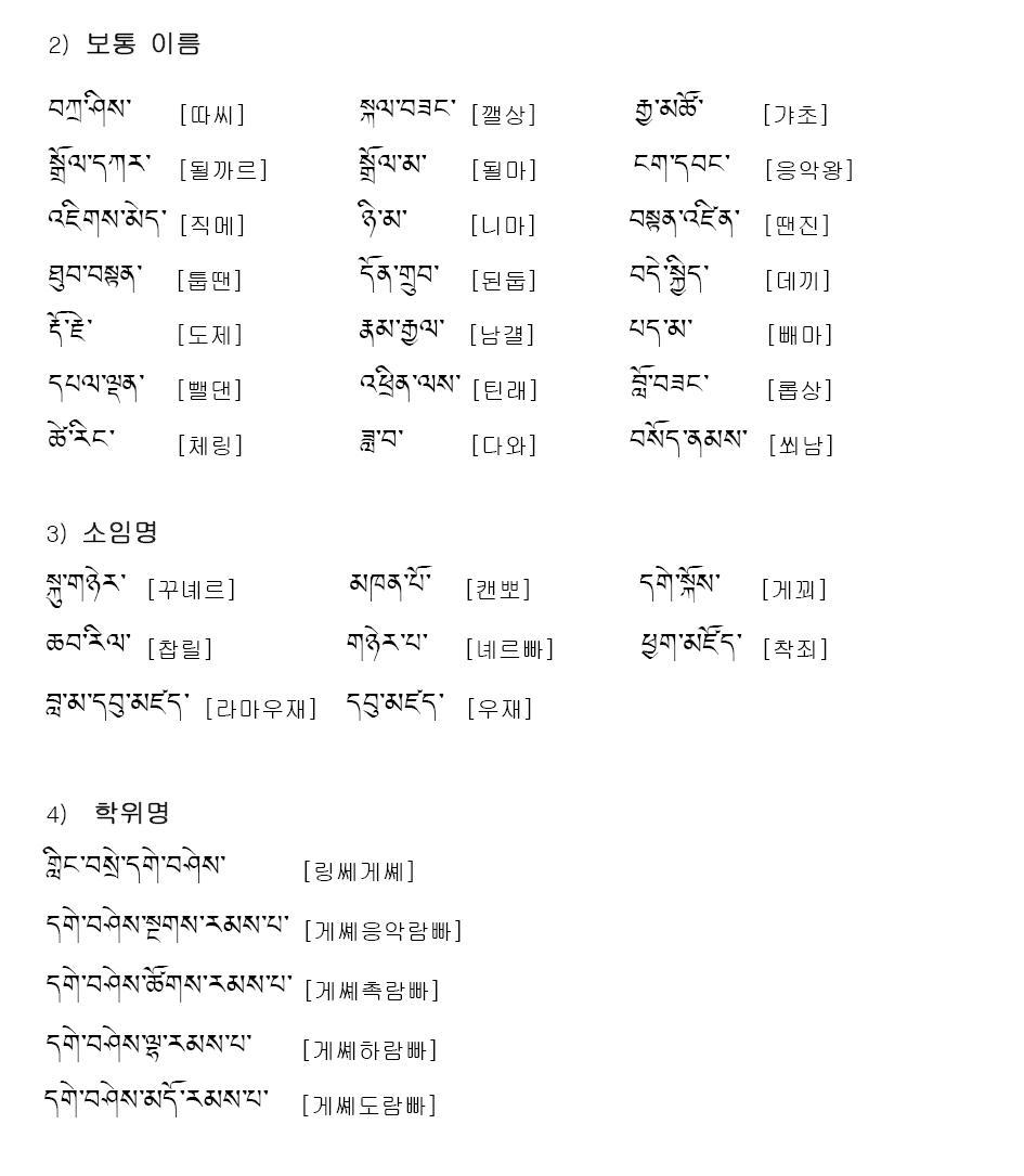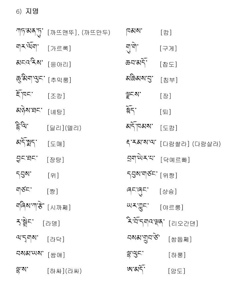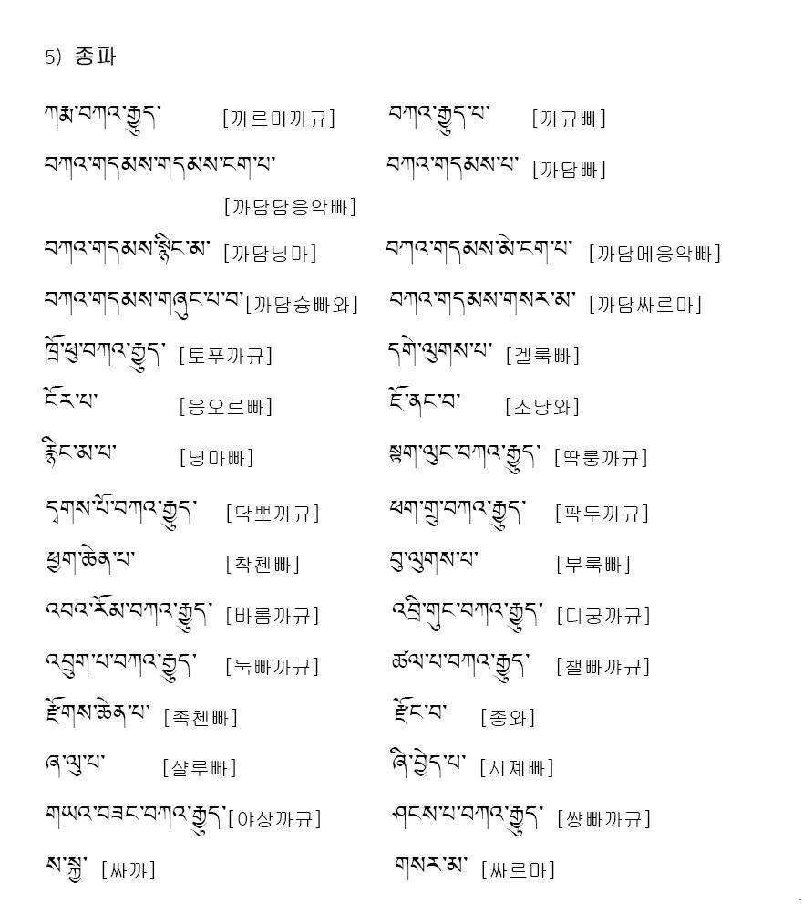 ※ 부록: 티벳어 한글 표기안을 따른