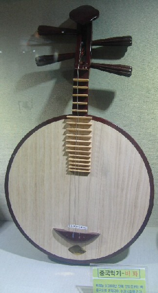 [사진 출처: 인천 한중문화관에 비치된 중국악기 비파(琵琶)의 사진; 오른쪽은 네이버백과사전에서 발췌한 현악기 당비파(唐琵琶)]