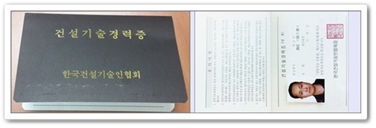 ♣ 1일속성 특강으로 기능사 자격증 취득 → "건설기술자경력수첩" 발급.
