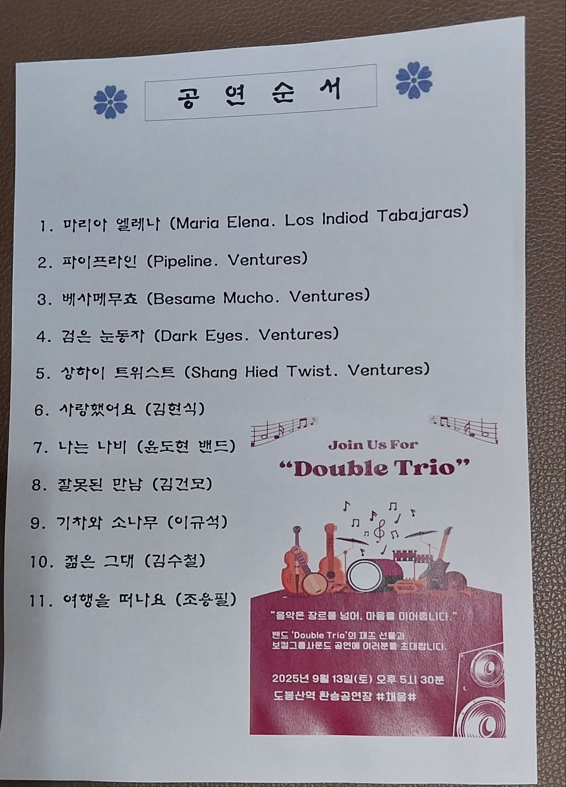 동북시민학교 박은희샘 자매공연 축하드립니다 ♡ 작성자온달|작성시간25.09.13|조회수43 목록 댓글 0 글자크기 작게가 글자크기 크게가 세자매 부부가 모여 공연을 준비하며 정기적으로 연습해오셨다네요. 정말 멋있네요. 존경합니다 ♡♡♡ 다음검색 현재 게시글 추가 기능 열기 북마크 공유하기 신고 센터로 신고 댓글 댓글 0 댓글쓰기 답글쓰기 댓글 리스트