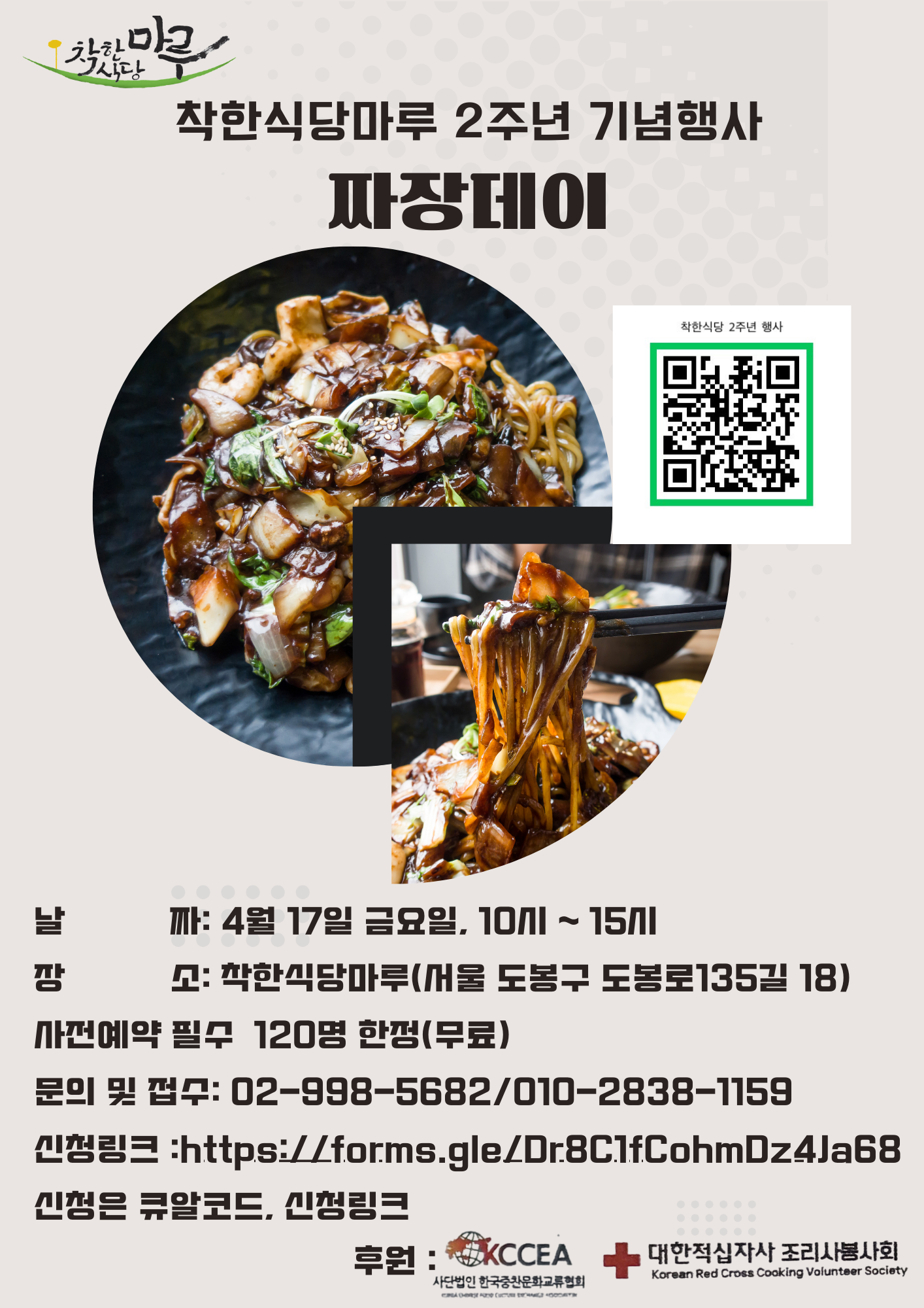 2주년을 맞이하여 4월 17일 금요일 오전 10시~오후 3시 까지 맛있는 짜장면 한그릇 을 대접하오니