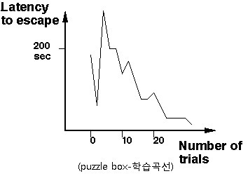 탈출하게 되었다. 즉, 고양이는 탈출 직전에 자기가 한 행동과 탈출이라는 결과를 조금씩 연결함으로써