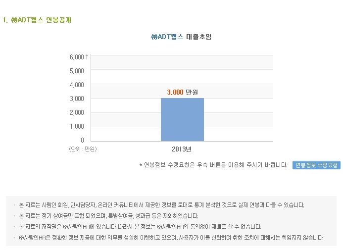 2013년도 대졸초임 기준 ADT캡스 연봉이니 참고하시기 바랍니다^^