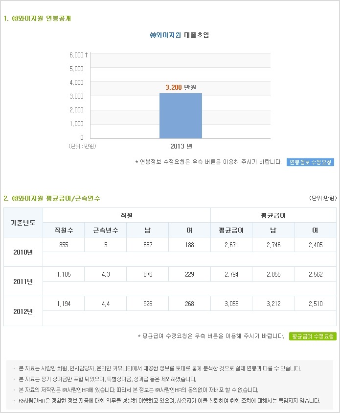 와이지원 연봉정보
