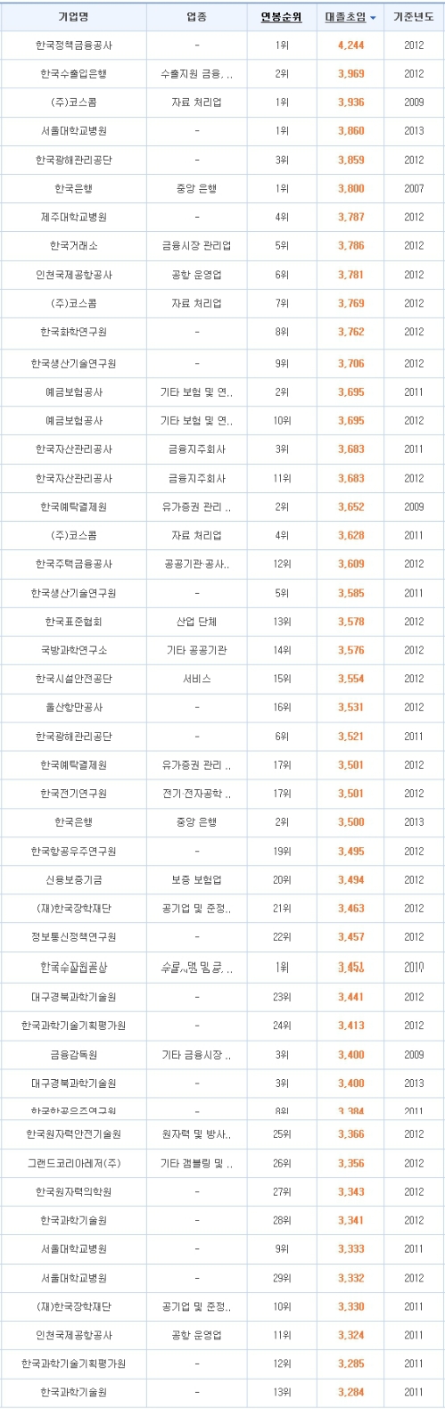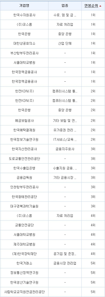 평균연봉 순위이니 참고하시면 좋을 것 같습니다^^