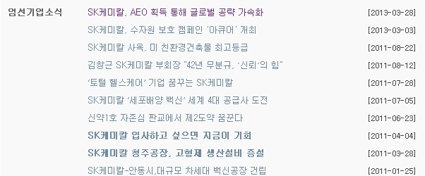 읽어보고 싶은 SK케미칼 소식이 있다면 이미지 밑에 링크 달아드릴테니 참고하시면 좋을 것 같네요^^