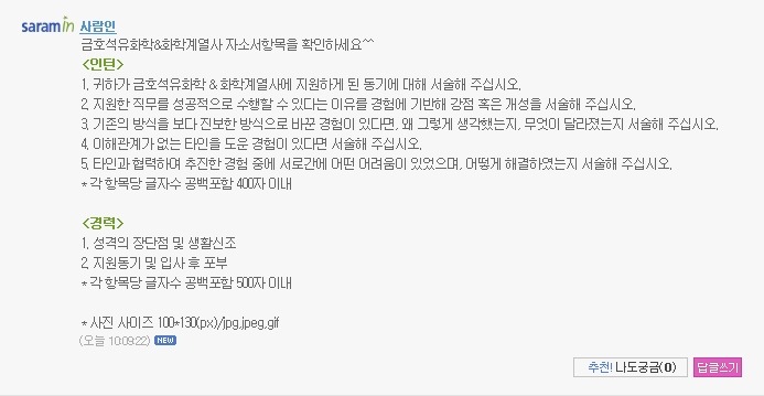 금호석유화학 자소서 항목이니 확인하시기 바랍니다