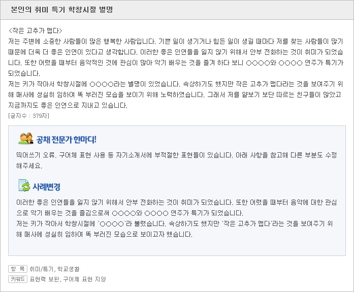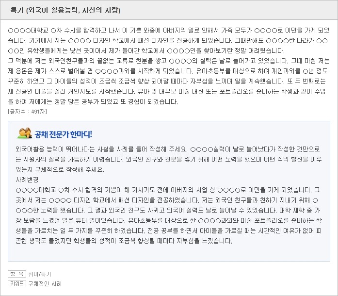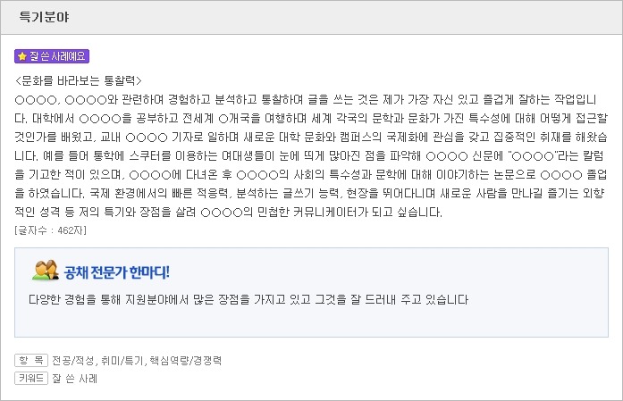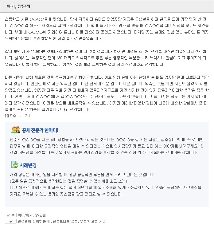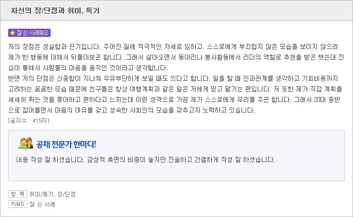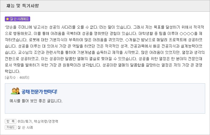 <자소서 취미/자소서 특기 잘 쓴 사례>