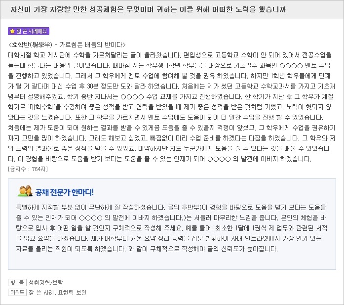 [자기소개서 예문] 성취경험 예문, 이렇게 쓰면 칭찬일색!