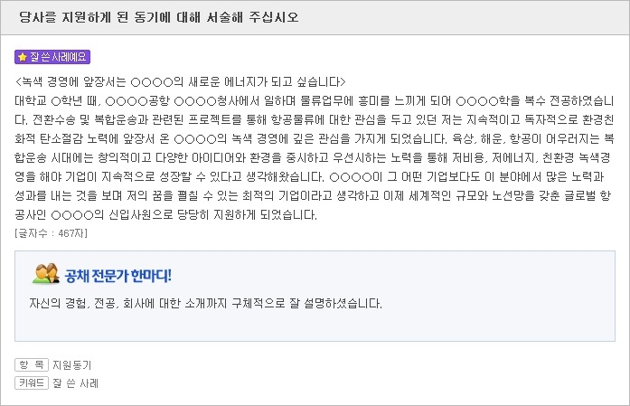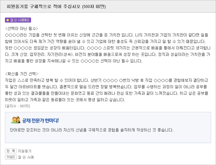 <자소서 지원동기 잘 쓴 사례2>