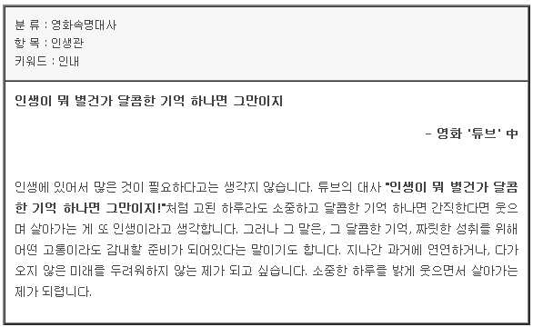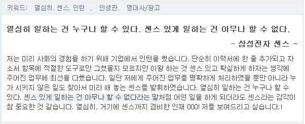 그런 당연스러운 단어, 표현들이 아닌 나만의 표현, 경험을 곁들이면 금상첨화입니다!