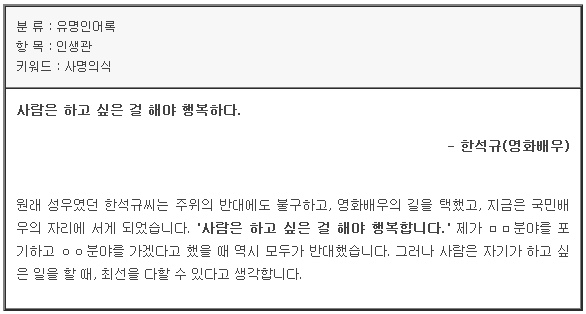 취업톡 여러분 생활신조 다시 한번 잘 적으시기바랍니다.