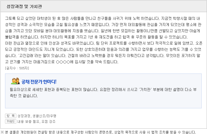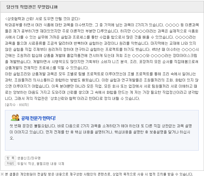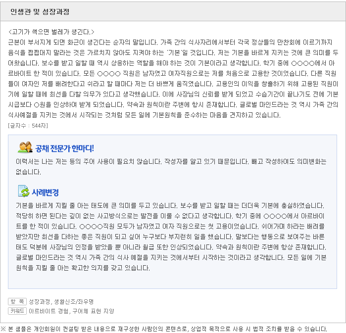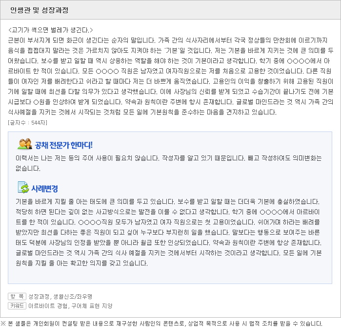 자기소개서 직업관, 인생관, 가치관 예시 보시면서 자신의 자소서랑 비교해보세요^^