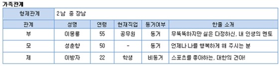 "나는 2남 중 장남으로 부모님과 함께 살고있다"