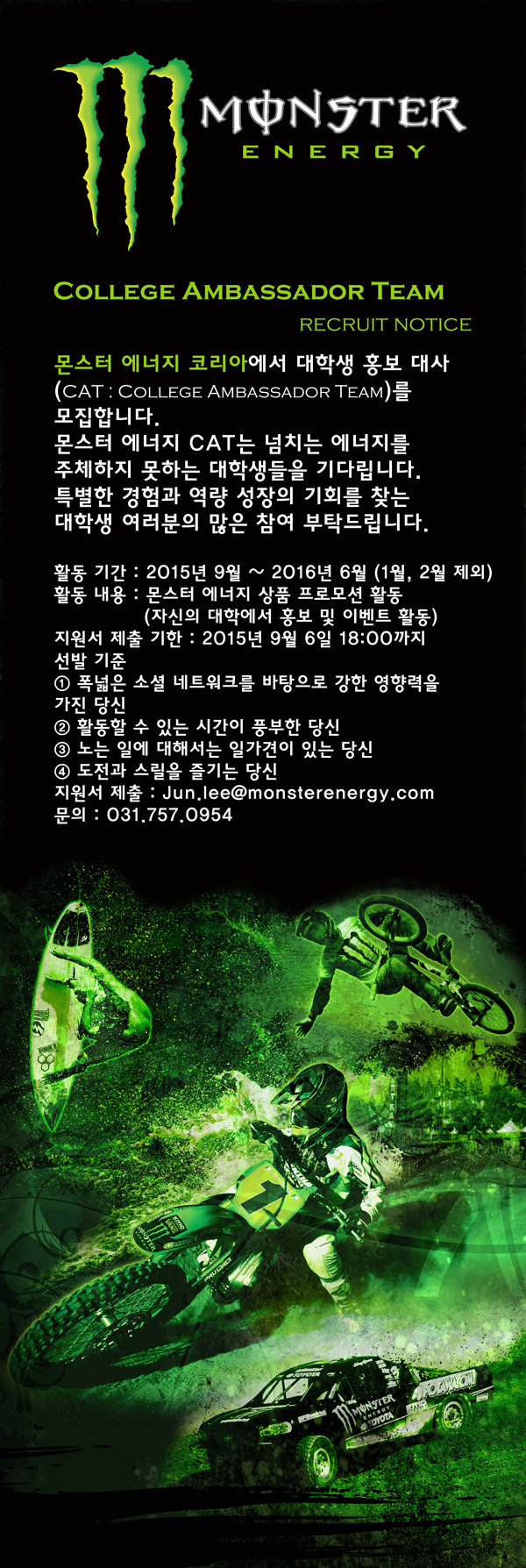 - 지원서 제출 : Jun.lee@monsterenergy.com